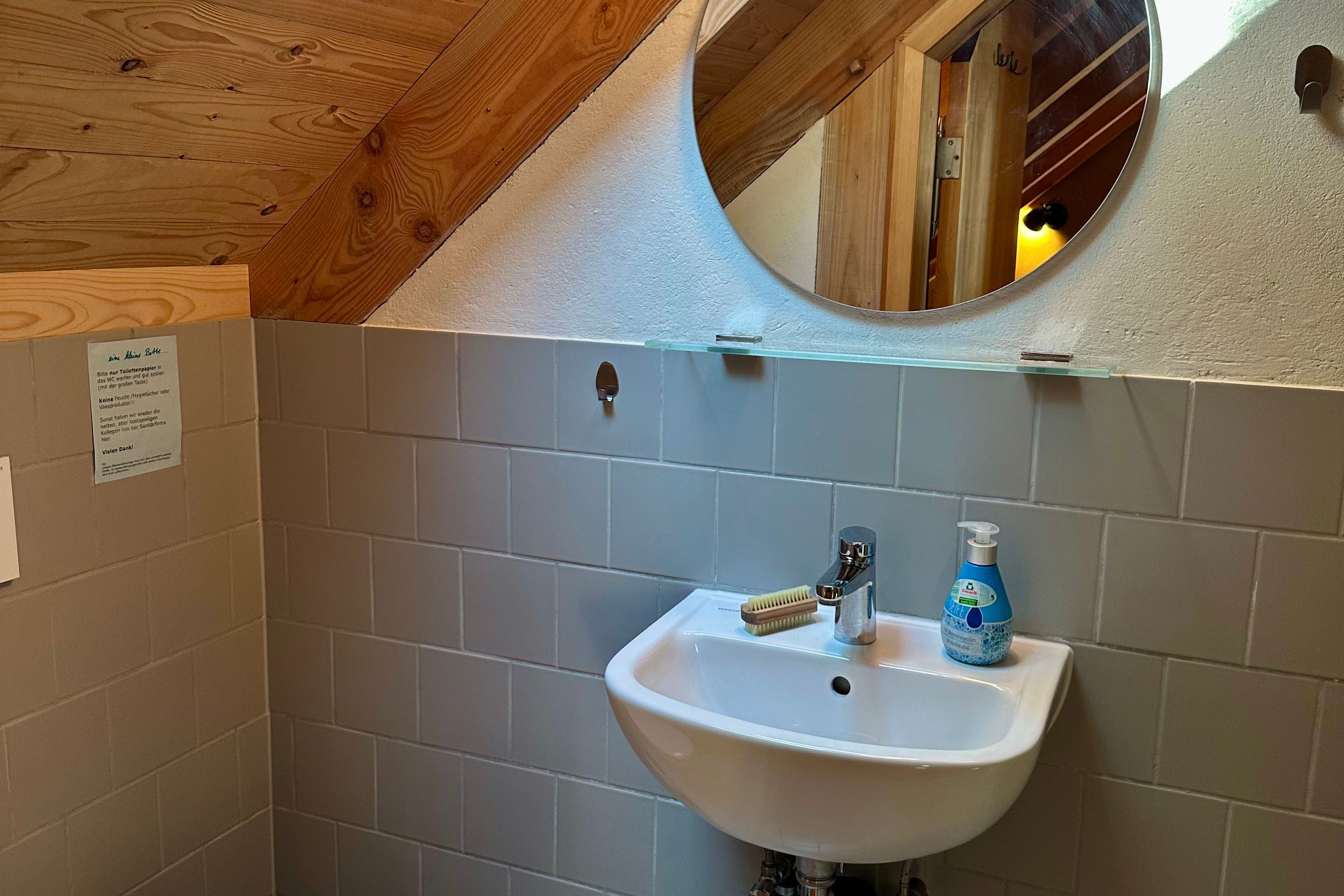 Die 38 qm große Ferienwohnung ist kompakt, aber clever gestaltet und bietet ausreichend Platz für bis zu vier Personen. Die Schlafbereiche bestehen aus vier Stapelbetten, ideal für Familien oder kleine Gruppen. Das Badezimmer ist funktional eingerichtet und verfügt über eine Dusche.
