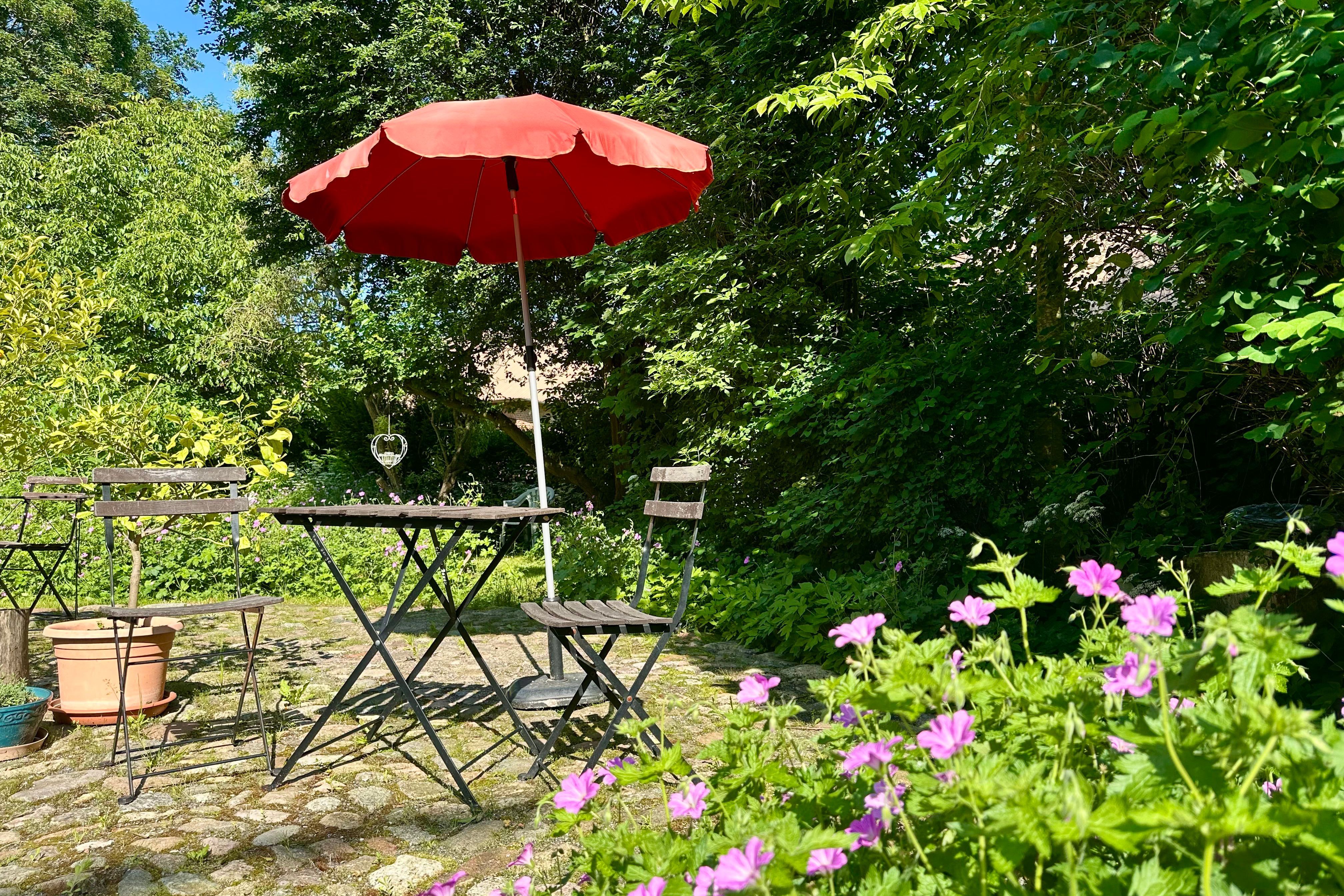 Im Außenbereich finden Sie Gartentische, Stühle, zwei Liegen und einen Grill perfekt für entspannte Stunden im Freien. Ein PKW-Stellplatz steht Ihnen auf dem Gelände zur Verfügung.