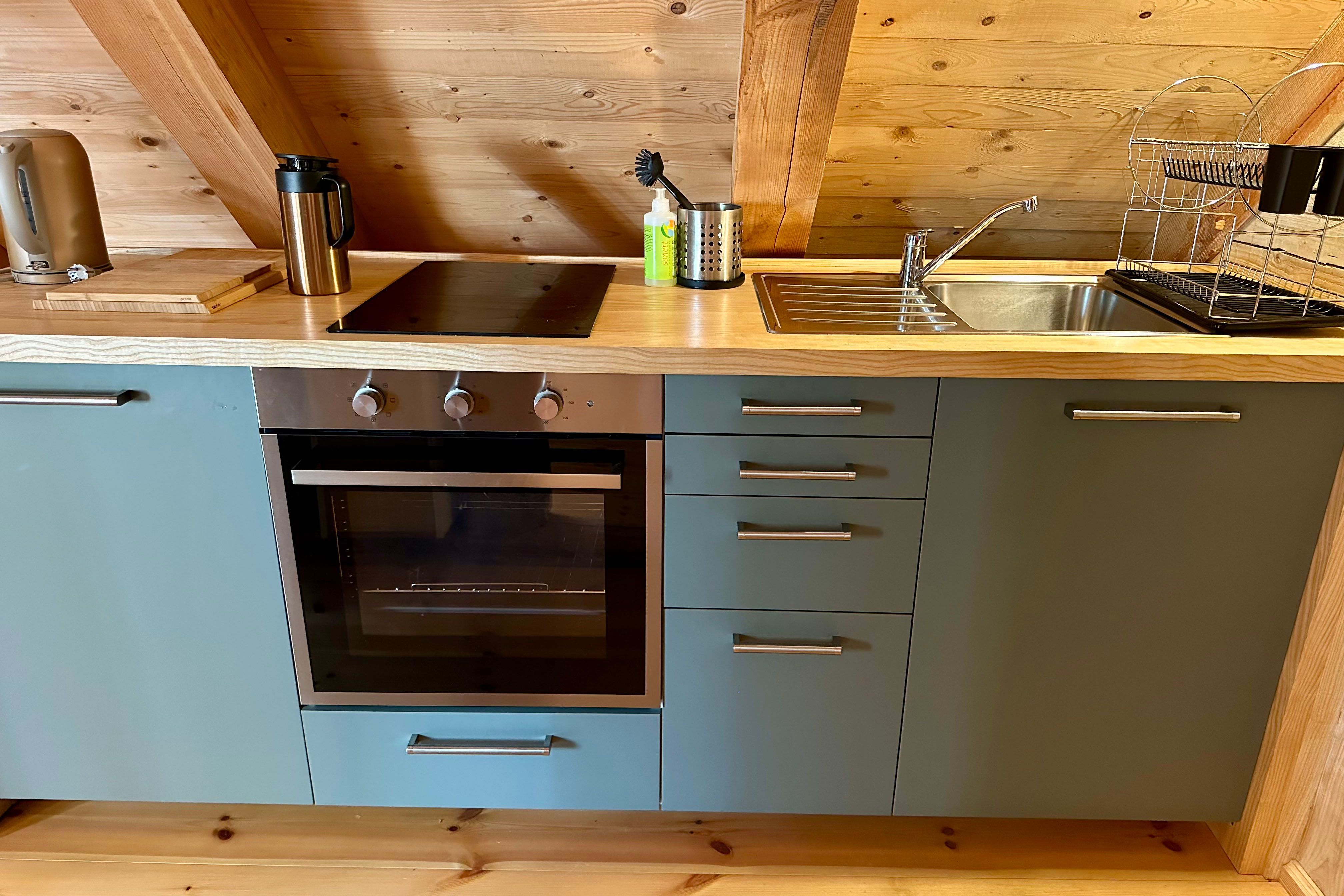 Das Herzstück der Wohnung ist das helle, offene Wohnzimmer, das als zentraler Treffpunkt dient. Von hier aus gelangen Sie in die angrenzenden kleinen Schlafnischen sowie in die Küche. Die Küche ist praktisch in das Wohn-Ess-Zimmer integriert und bietet alles, was Sie für Ihren Aufenthalt benötigen.