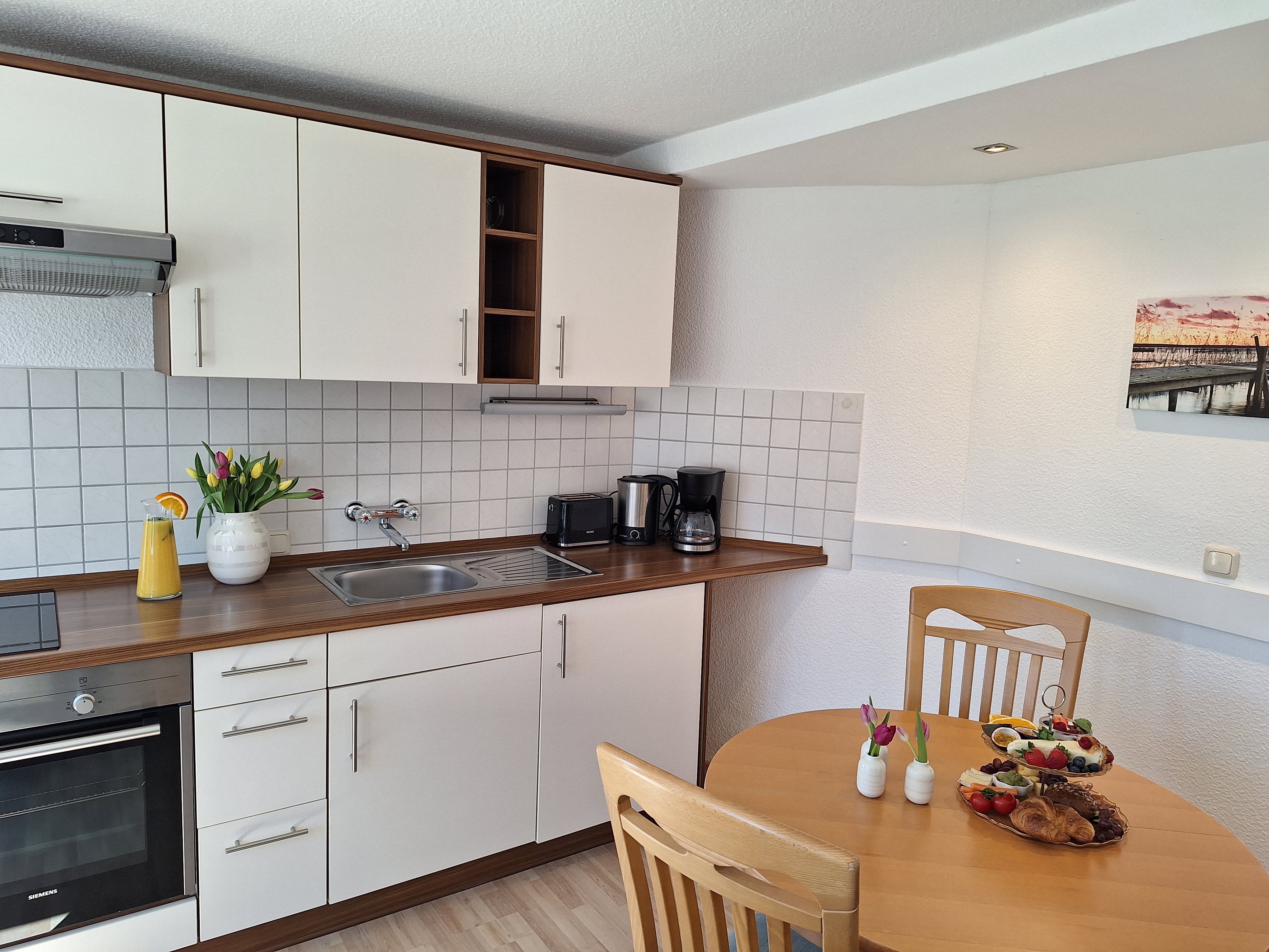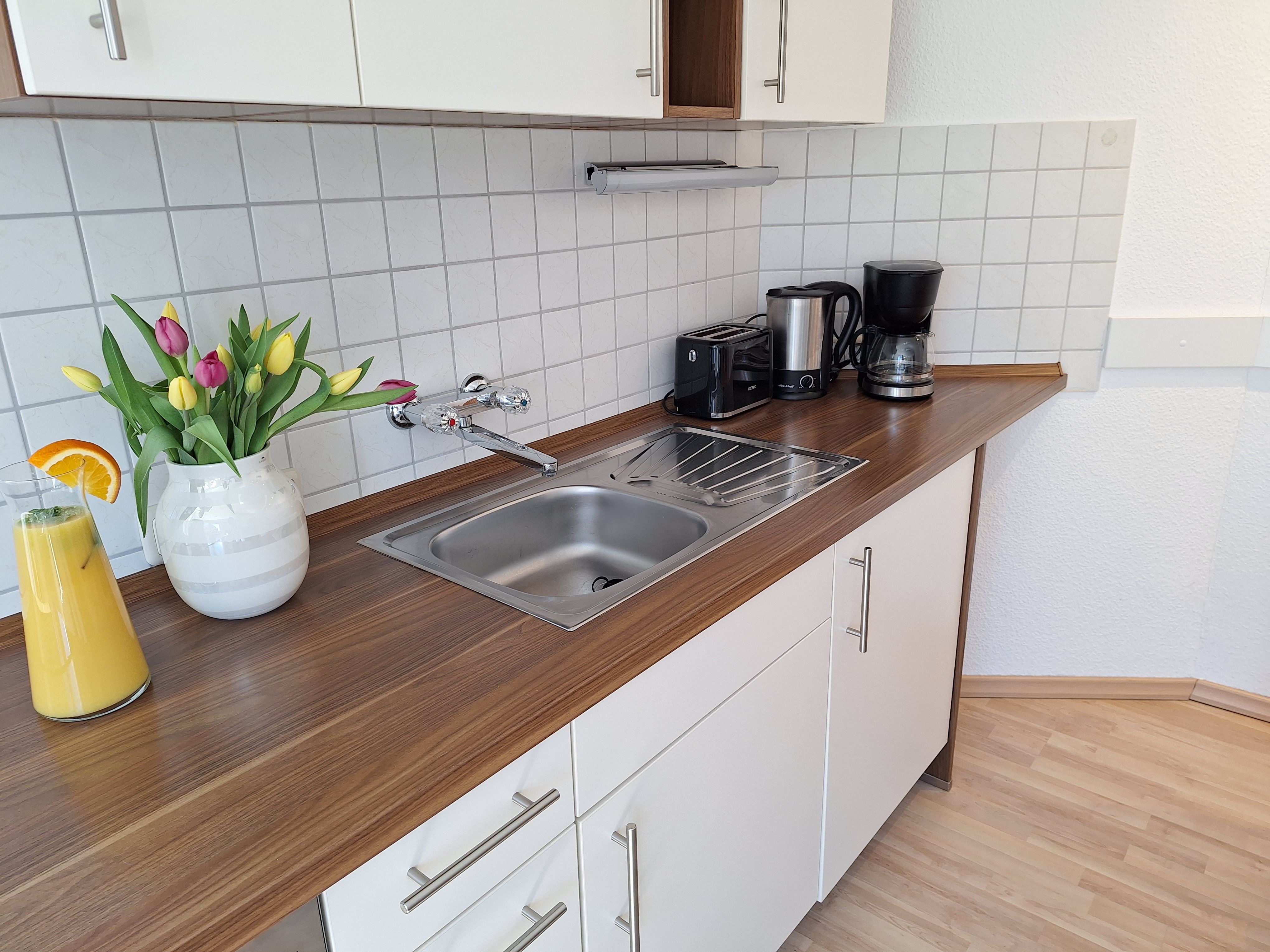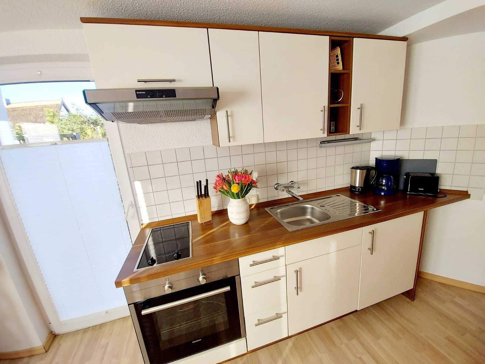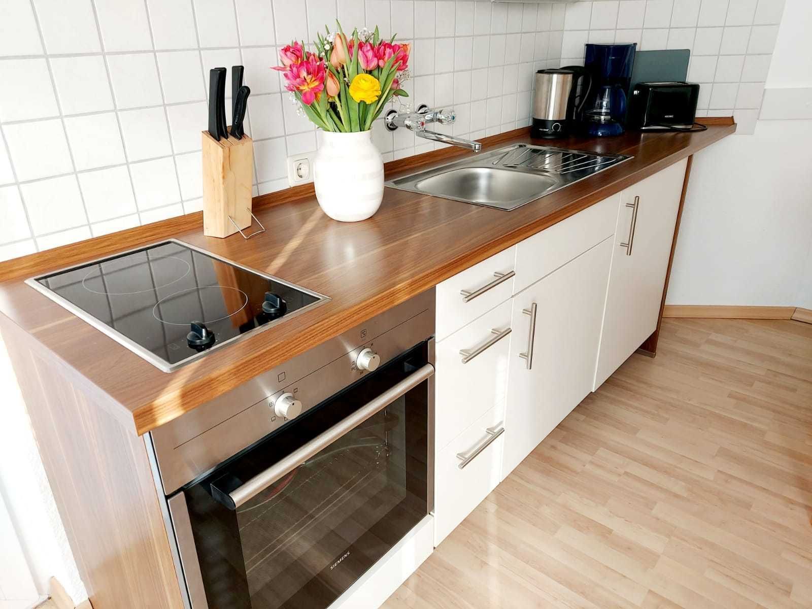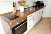 Voll ausgestattete Küchenzeile mit Backofen, Cerankochfeld und Kühlschrank