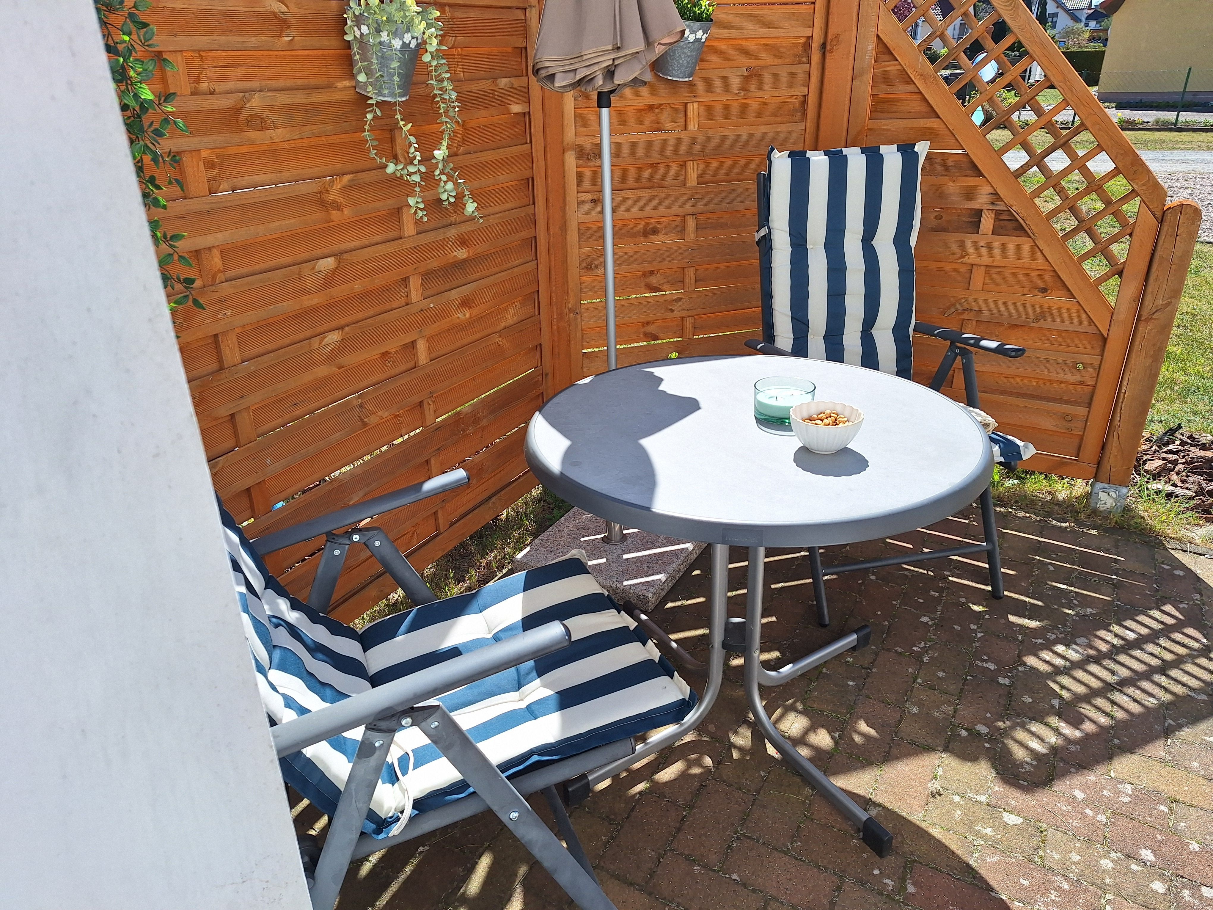 Im Außenbereich erwartet Sie eine schöne Terrasse mit Gartenmöbeln und Grillmöglichkeit perfekt für entspannte Abende im Freien.