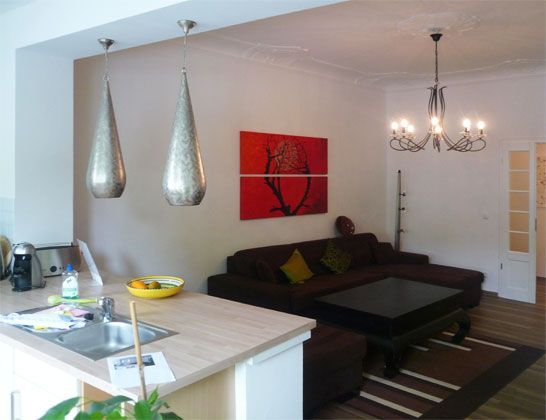 Im Hochparterre eines 1920 errichteten Mehrfamilienhauses befindet sich die moderne Ferienwohnung. Es gibt schöne hohe Räume in der großzügigen Wohnung und schmuckvolle Stuckdecken im Wohnzimmer.