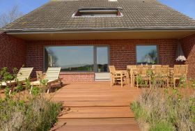 Der Küstenvogel Knutt - auch Knuttstrandläufer genannt - stand Pate für den Namen des Hauses. Er fühlt sich am Wattenmeer ganzjährig zu Hause. Seien Sie auch zu jeder Jahreszeit unser Gast und genießen die Insel und das Meer im kalten Winter, stürmischen Herbst, erwachenden Frühling und natürlich zur Strandkorbzeit im Sommer. Das Haus bietet der gesamten Familie Platz. Es wurde liebevoll eingerichtet, sodaß Sie sich wie zu Hause fühlen. Das Haus Knutt hat einen großen, nach Süden ausgerichteten Garten (über 1000 m²) mit einer großzügigen windgeschützten Teakholzterrasse. Es besteht ein unverbauter Blick auf Wiesen und den Deich. Vom Balkon des Obergeschosses kann man des Meer sehen.