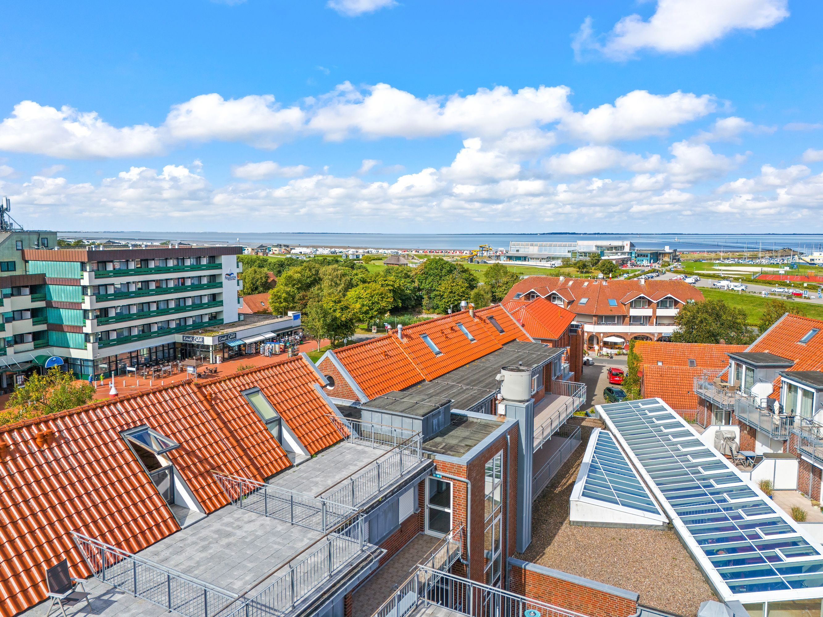 Im Nordseegartenpark sind Sie mittendrin und das bedeutet: zum Bäcker- , ins Cafe- oder in die Pizzeria gehen, ohne das Haus zu verlassen. Mit dem Fahrstuhl oder über die Treppe gelangen Sie in den Supermarkt.