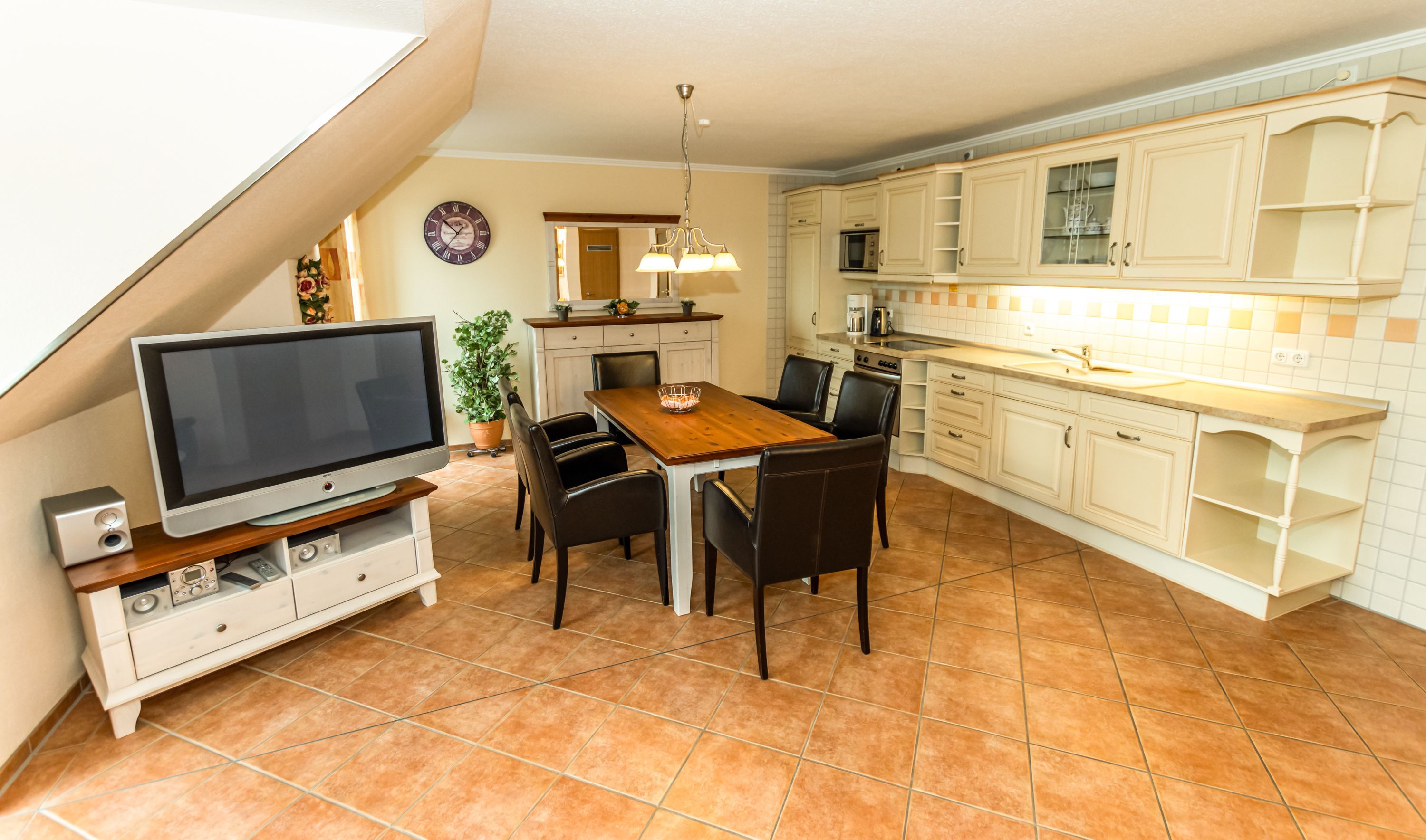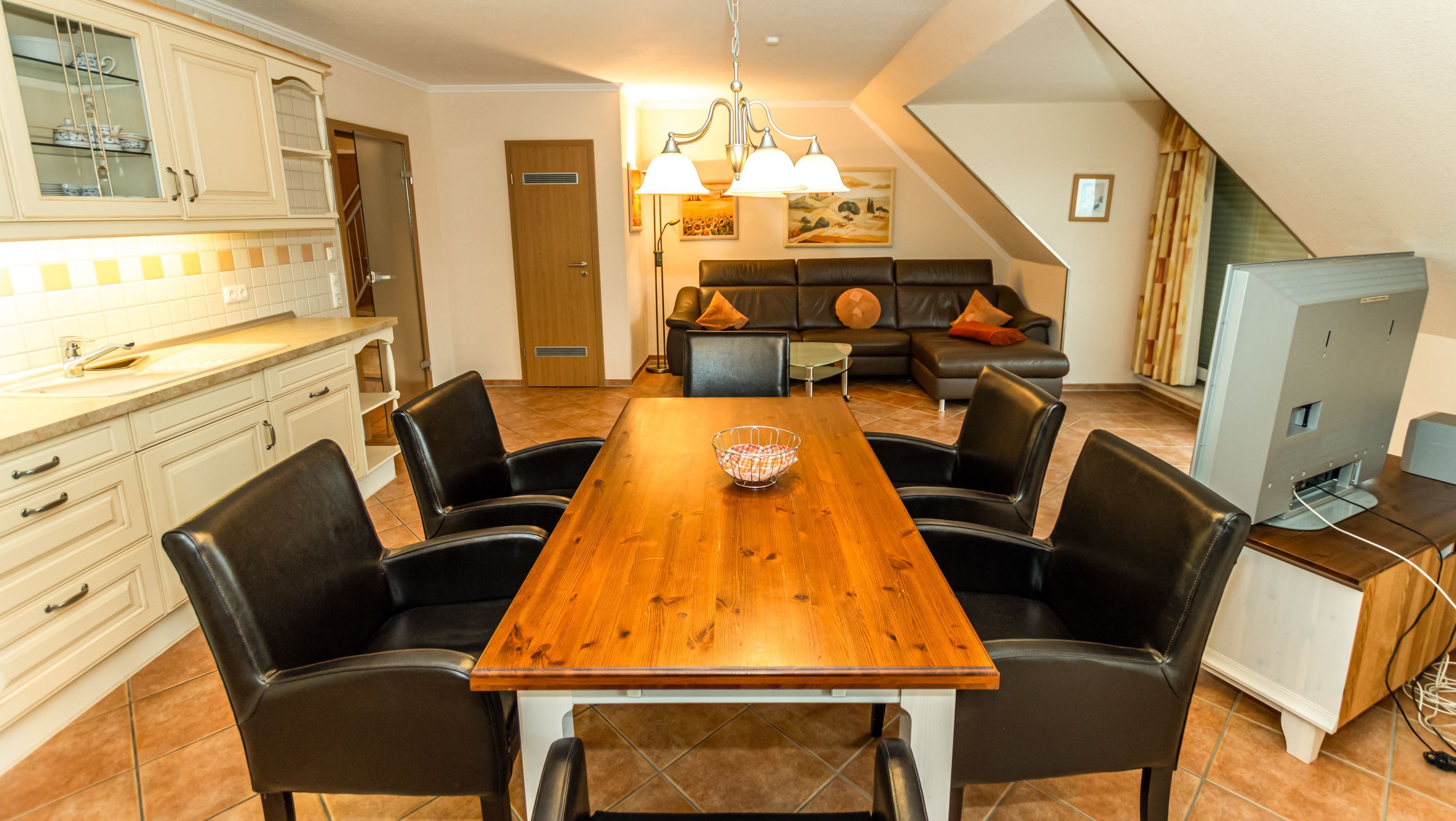 - Wohnraum mit integrierter Küche und Essgruppe