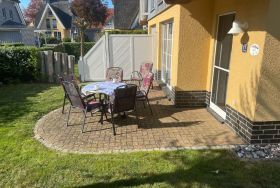 Bei schönem Wetter kann man nach dem Strandgang auf der Terrasse sitzen. Gartenmöbel und ein Grill stehen für einen gemütlichen Abend im Freien bereit.