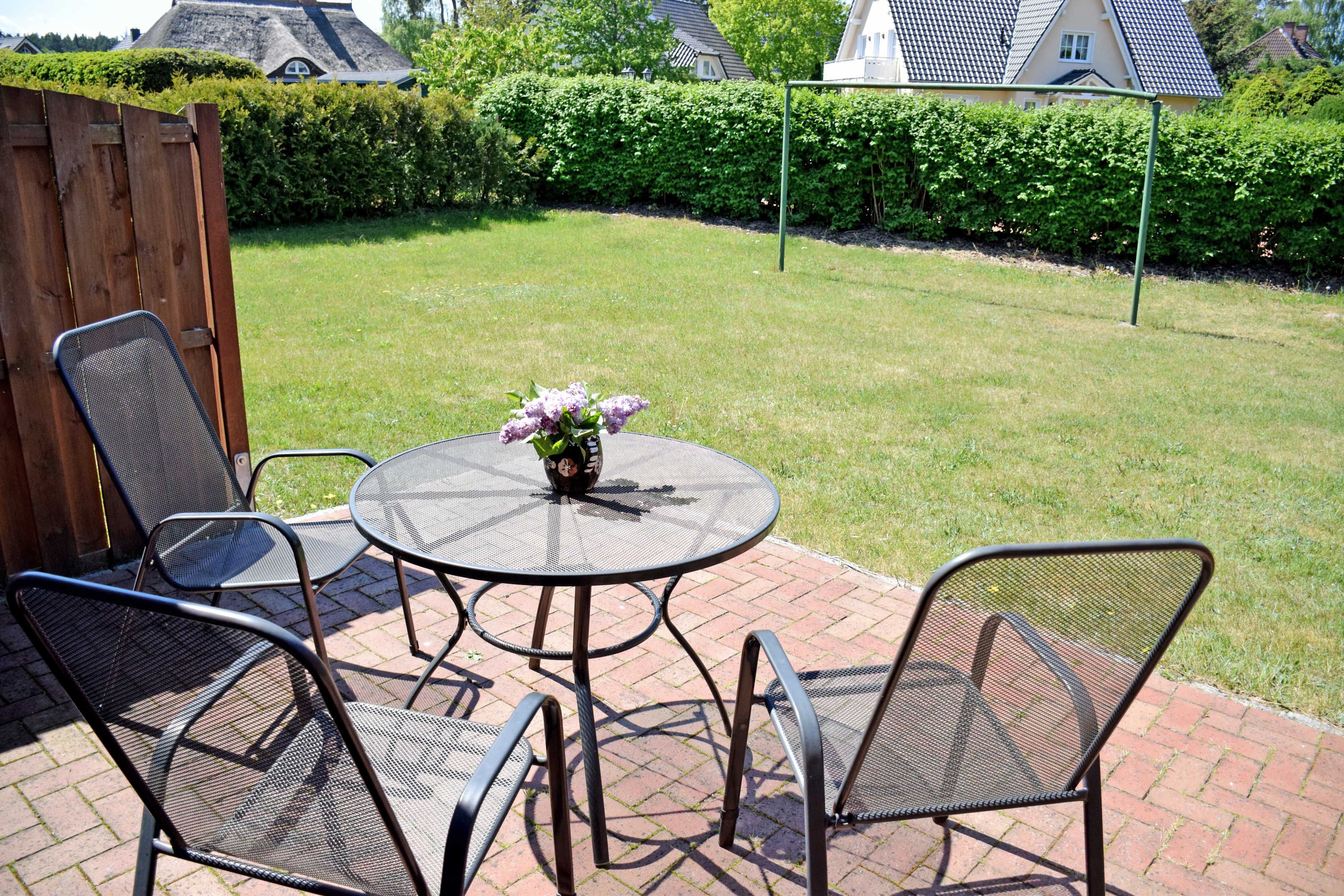 Gäste in dieser Ferienwohnung können am Haus eine Wiese mit Terrasse und Gartenmöbeln sowie einer Grillmöglichkeit nutzen.