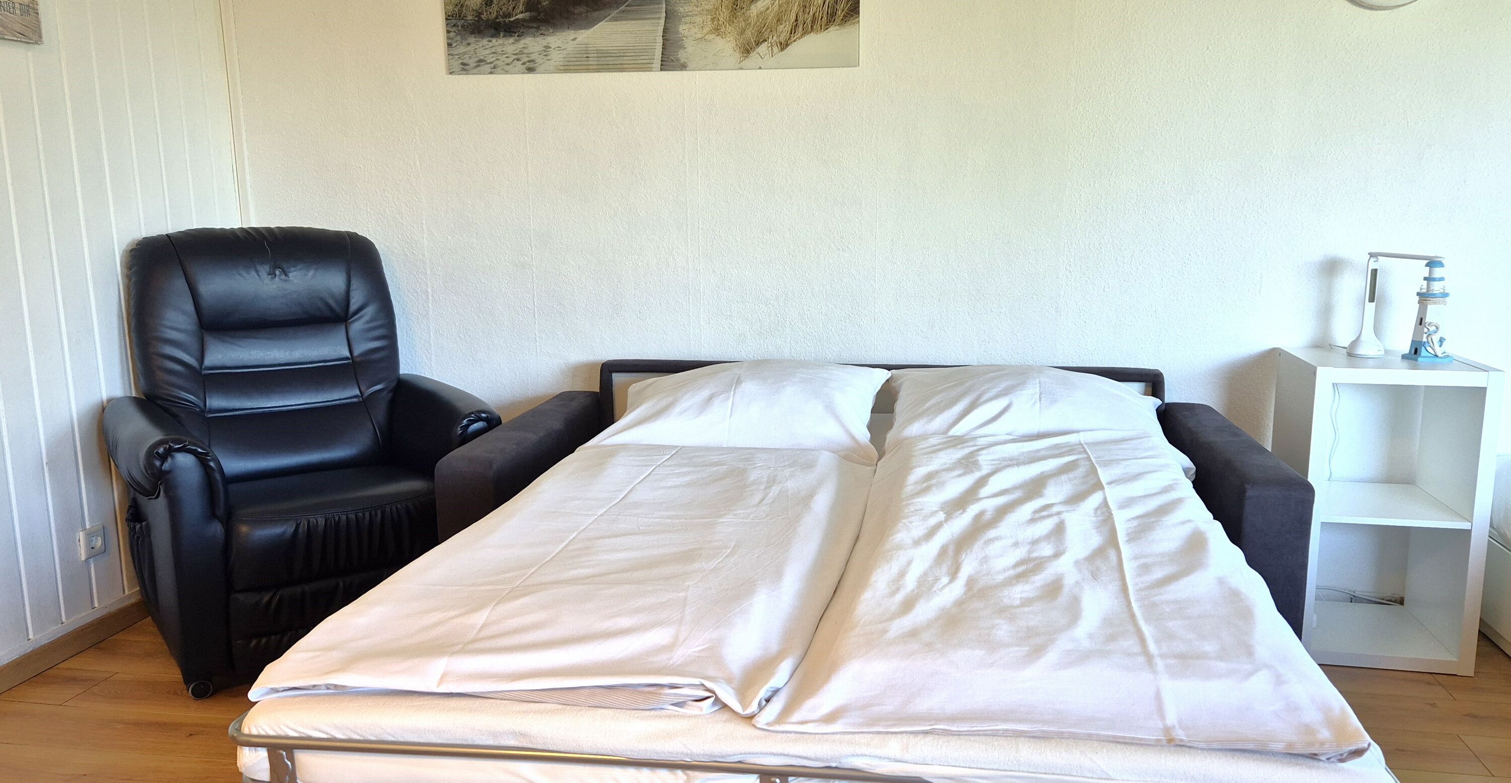 Das Appartement besteht aus einem Wohnbereich mit einem Doppelbett und einem Schlafsofa, die jeweils Platz für 2 Personen bietet, eine voll ausgestattete integrierte Küche, einem Badezimmer mit Dusche sowie WC.