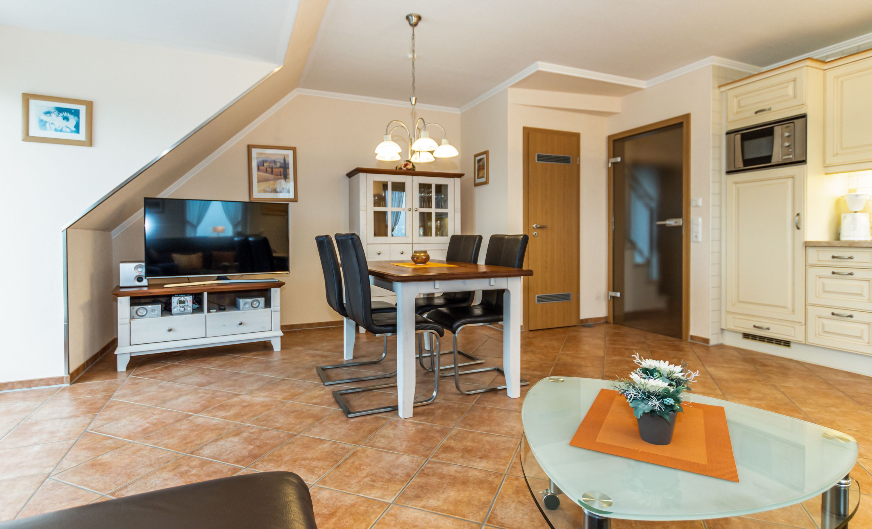- Wohnraum mit integrierter Küche und Essgruppe