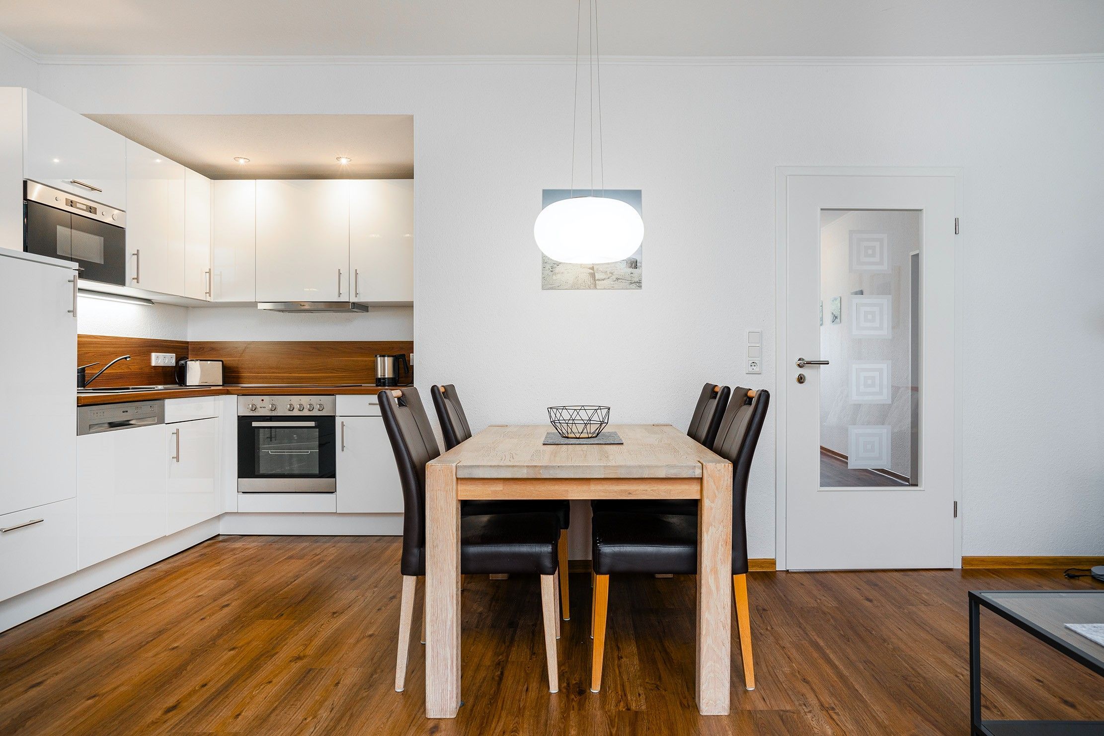 Unsere Wohnung Nordwind SÜD bietet die perfekte Kombination aus zentraler Lage und entspannter Privatsphäre. Auf etwa 80qm finden Sie zwei einladende Schlafzimmer mit einem Doppel- und einem Boxspringbett und ausreichend Ablagefläche und somit ist sie ideal für Familien oder Paare geeignet. Der großzügige Wohnbereich bietet neben einer voll ausgestatteten Einbauküche eine gemütliche Sitzecke. Das Tageslichtbad ist hell und mit einer ebenerdigen Dusche ausgestattet. Besonders hervorzuheben ist zum Einen der eigene Parkplatz an der Wohnung sowie die private Terrasse hinterm Haus, auf die Sie sich zurück ziehen und die frische Luft genießen können. Ihr Vierbeiner ist in dieser Wohnung ebenfalls herzlich willkommen!