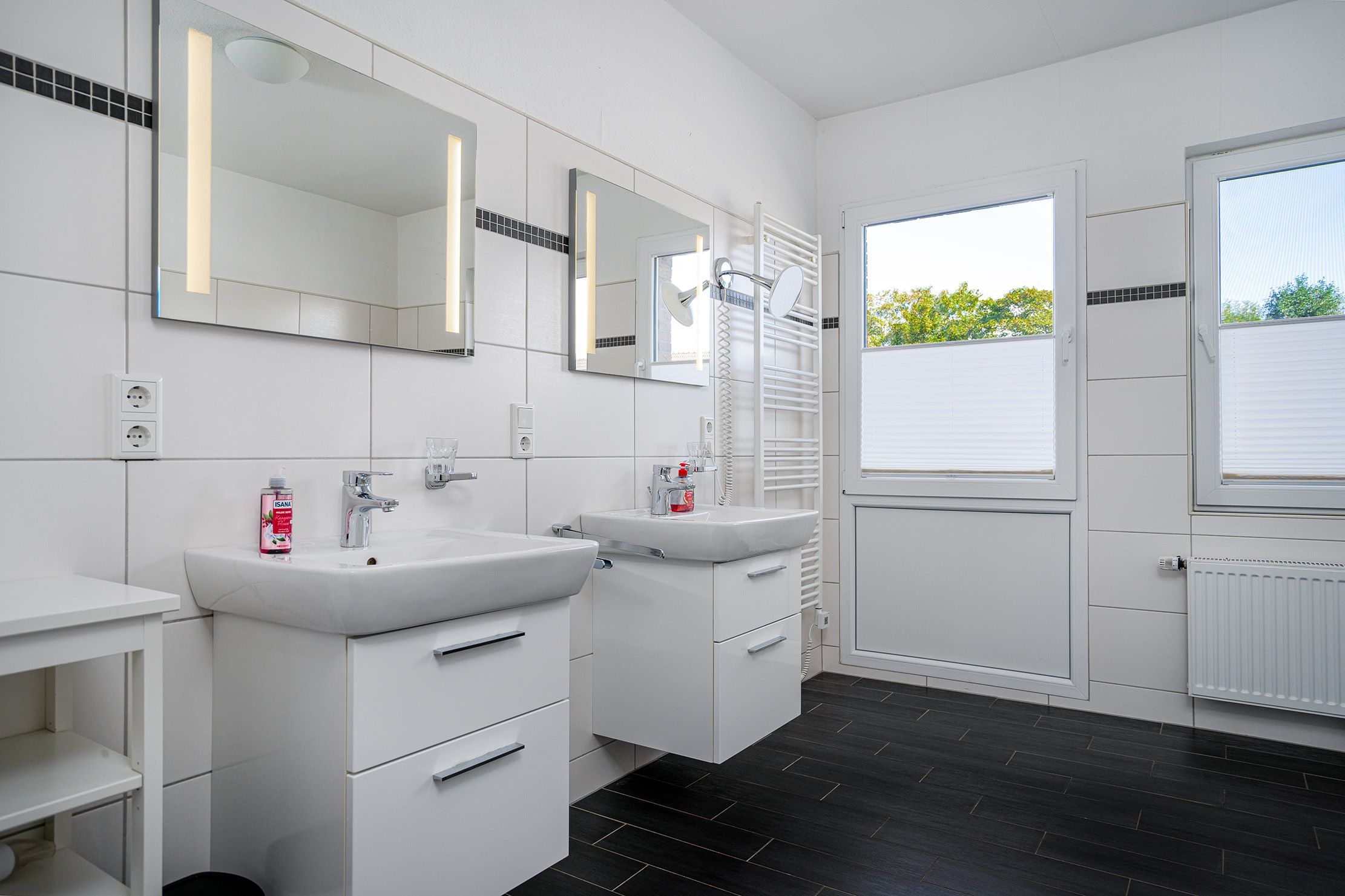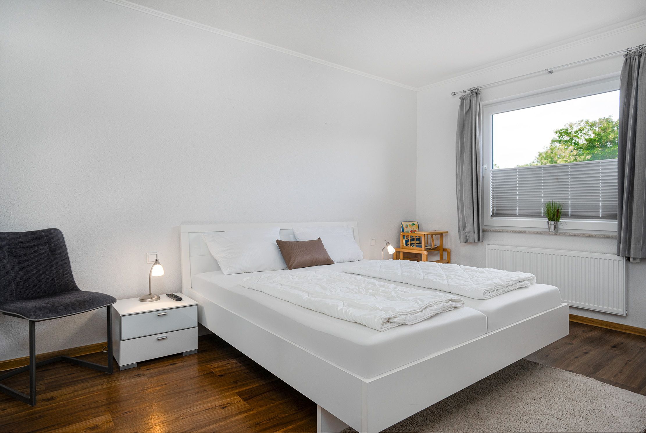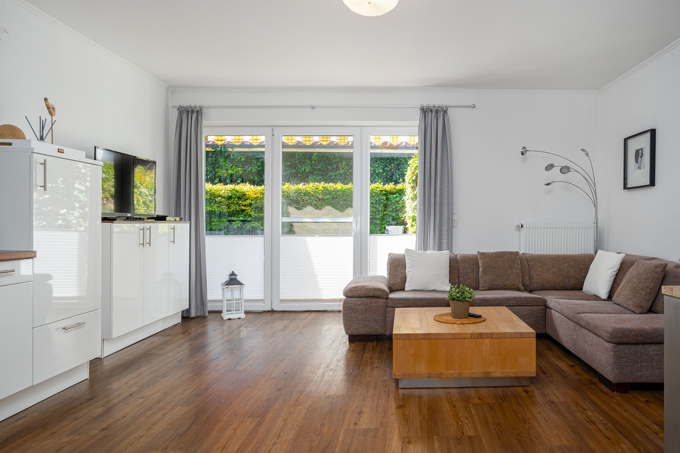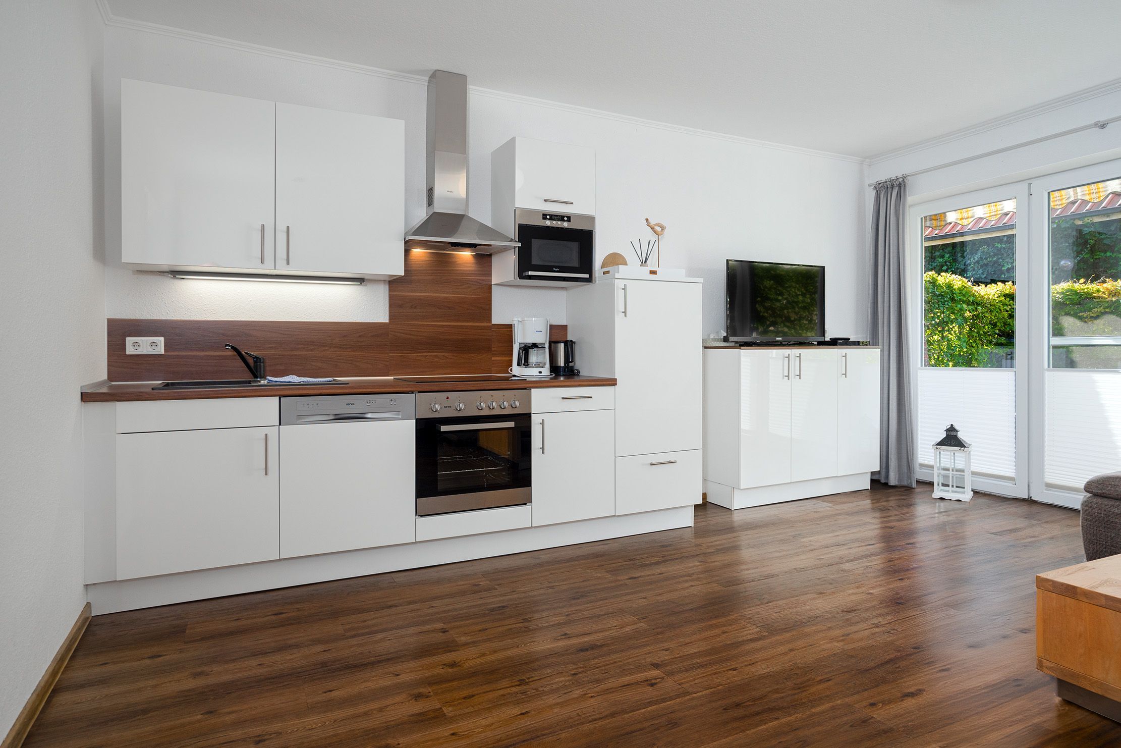 Die Ferienwohnung Nordwind OST bietet auf 80qm viel Raum für einen erholsamen Aufenthalt. Neben zwei geräumigen Schlafzimmern, die mit einem Doppelbett und einem Boxspringbett ausgestattet sind, bietet der lichtdurchflutete Wohnbereich ein großes Sofa zum Entspannen, eine offene und voll ausgestattete Einbauküche sowie direkten Zugang auf die sonnige Terrasse, die sich perfekt für gemütliche Stunden im Freien eignet. Das großzügige Tageslichtbad besticht durch seine ebenerdige Dusche und die Doppelwaschbecken. Besonders hervorzuheben ist die Kombination aus zentraler Lage und dem zusätzlichen Komfort eines eigenen Parkplatzes sowie einer privaten Terrasse, die zu entspannten Momenten im Freien einlädt. Auch hier Vierbeiner ist in dieser Wohnung herzlich Willkommen!
