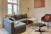 Drei Meter Raumhöhe mit traditionellen Stuckleisten und größzügigen Fensterfronten sorgen für lichtdurchflutete Räume. Alle Wohnungen verfügen standardmäßig über hochwertige Samsung (oder gleichwertig) LCD-TVs mit Kabelfernsehen, free WLAN, Fön sowie neben einer gut sortierten Küchengrund-ausstattung über eine Filterkaffeemaschine, eine SENSEO-kaffepadmaschine, Wasserkocher und einen Eierkocher. Pkw-Stellplätze sowie Fahrradabstellbereich befindet sich im Hof und sind je nach Verfügbarkeit kostenfrei nutzbar.