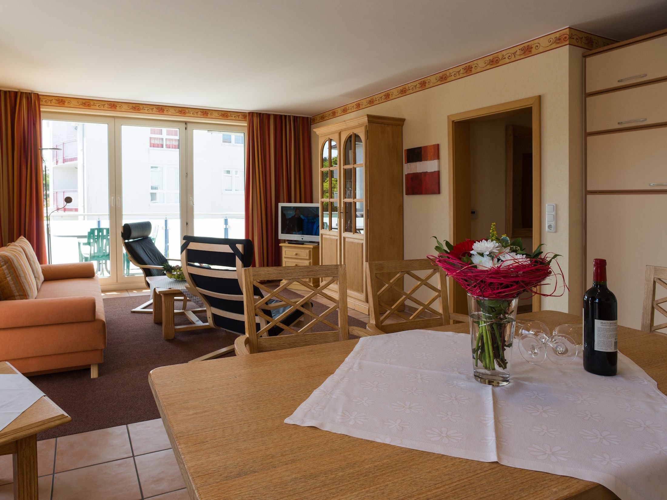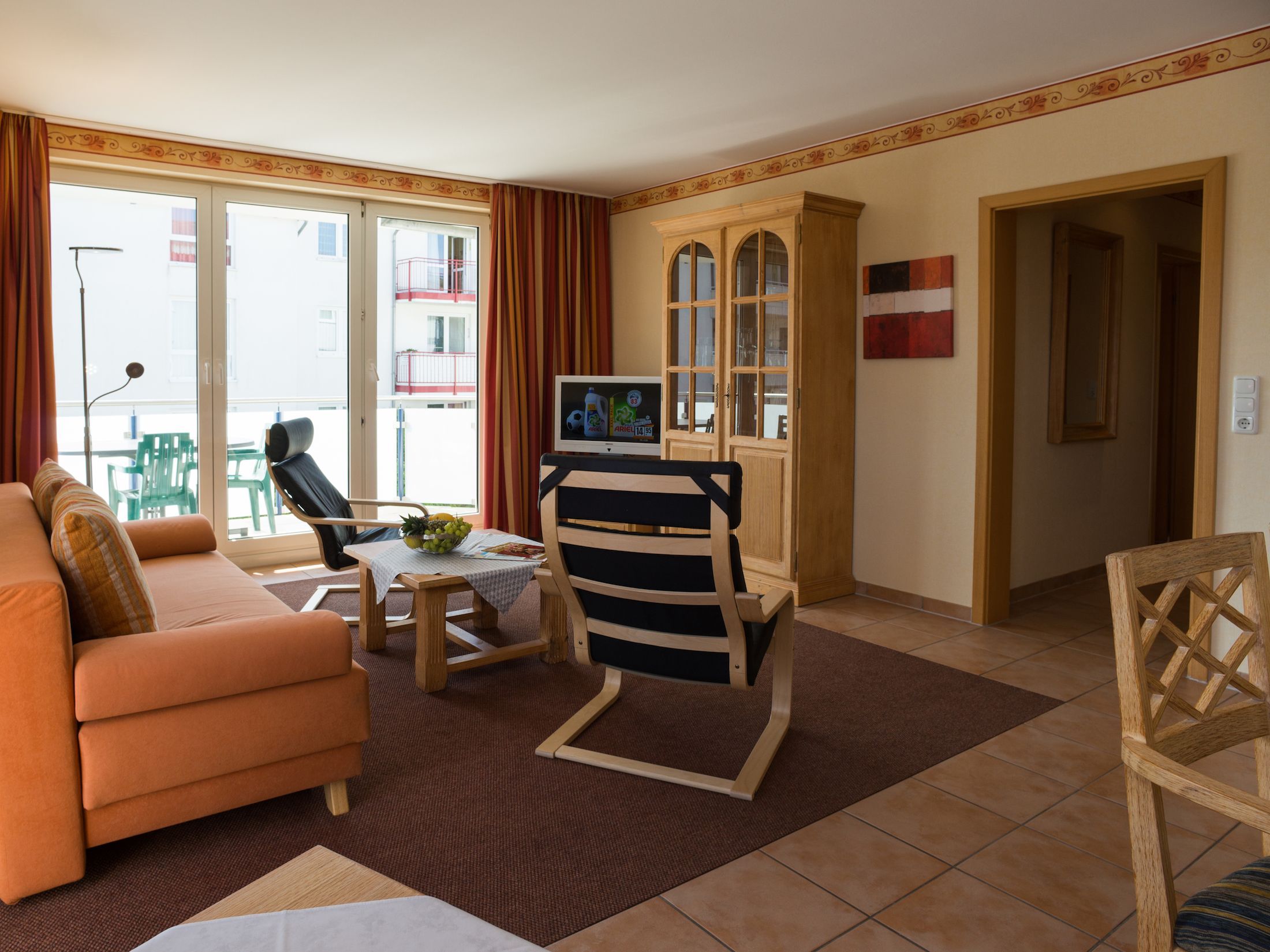 Die Ferienwohnungen vom Typ M bietet auf rund 75 m² ein gemütliches Zuhause für Ihren Urlaub. Mit zwei separaten Schlafzimmern, einem großzügigen Wohn- und Küchenbereich sowie einem einladenden Balkon oder einer Terrasse mit Gartenmöbeln lädt die Wohnung zum Entspannen ein. Der helle Wohnbereich ist mit einem bequemen Sofa, Kabel-TV und einer HiFi-Anlage ausgestattet perfekt für gemeinsame Abende.