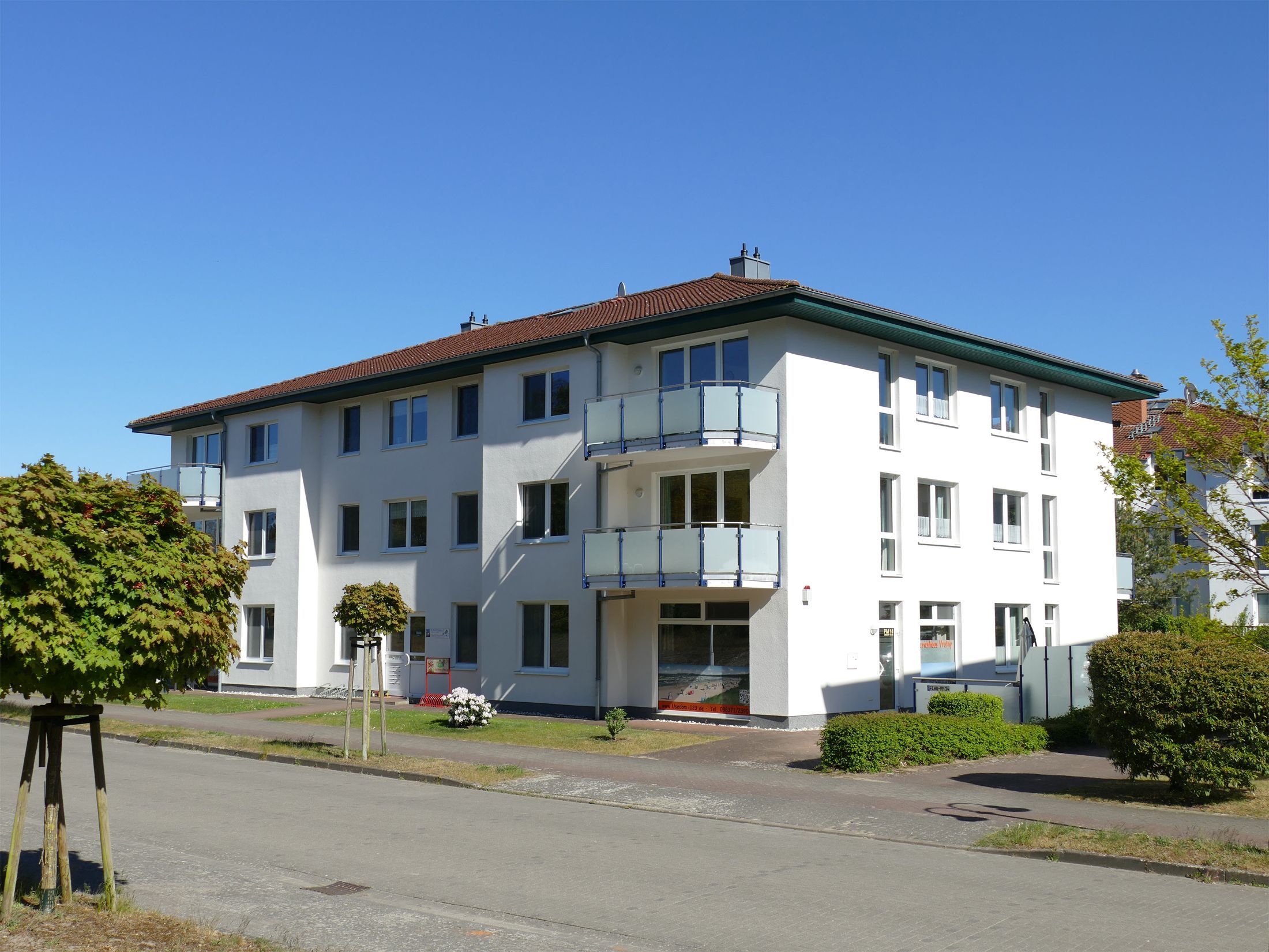 Das im Jahr 2000 neu erbaute Ferienhaus in Karlshagen bietet auf drei Etagen zwölf moderne Ferienwohnungen mit gehobener Ausstattung. In ruhiger, zentraler Lage direkt am Waldrand genießen Sie hier erholsame Urlaubstage im beliebten Ostseebad Karlshagen auf der Insel Usedom.