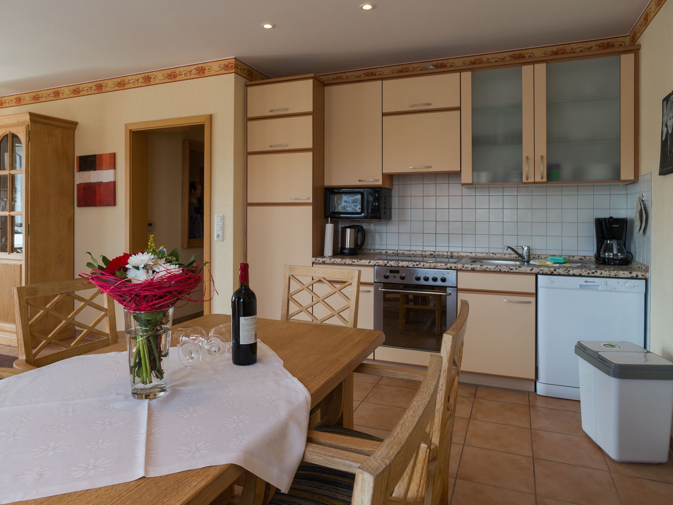• Voll ausgestattete Küche mit Geschirrspüler, Herd & Backofen, Kaffeemaschine, Wasserkocher, Geschirr & Besteck u.v.m.