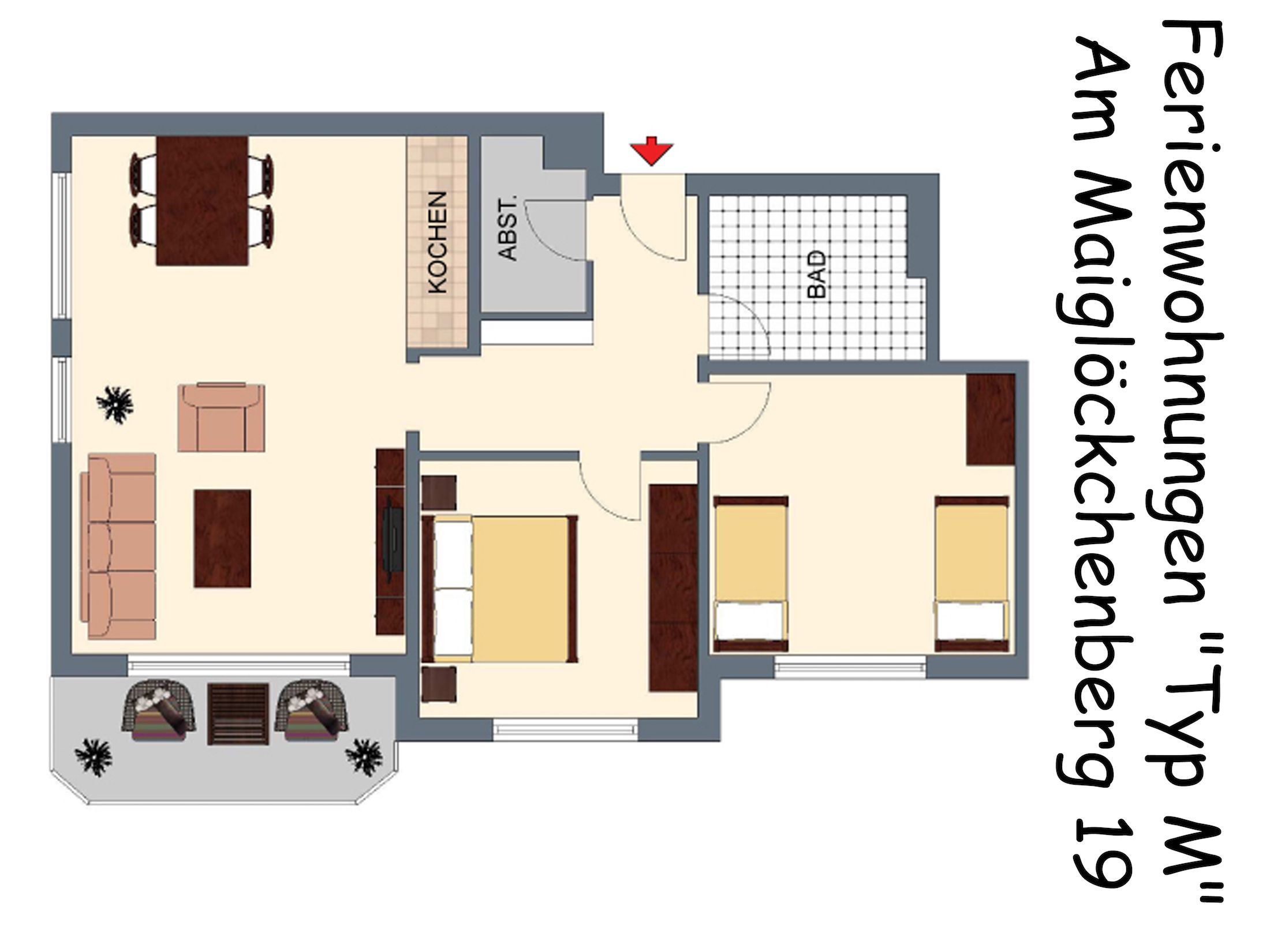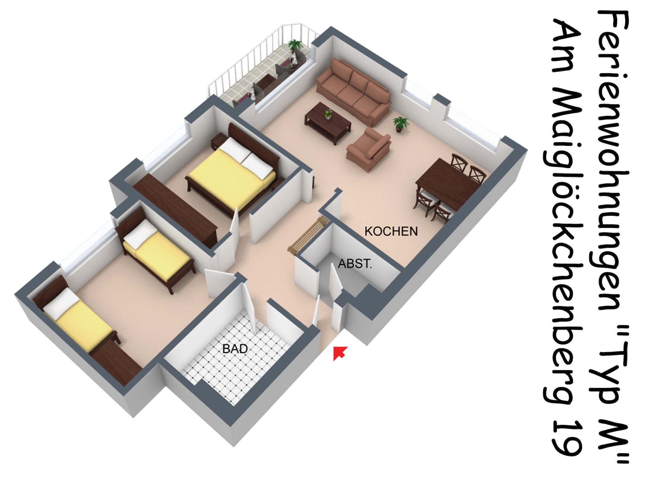 Drei-Raum-Wohnung Typ M mit Balkon/Terrasse im Ferienhaus Am Maiglöckchenberg 19