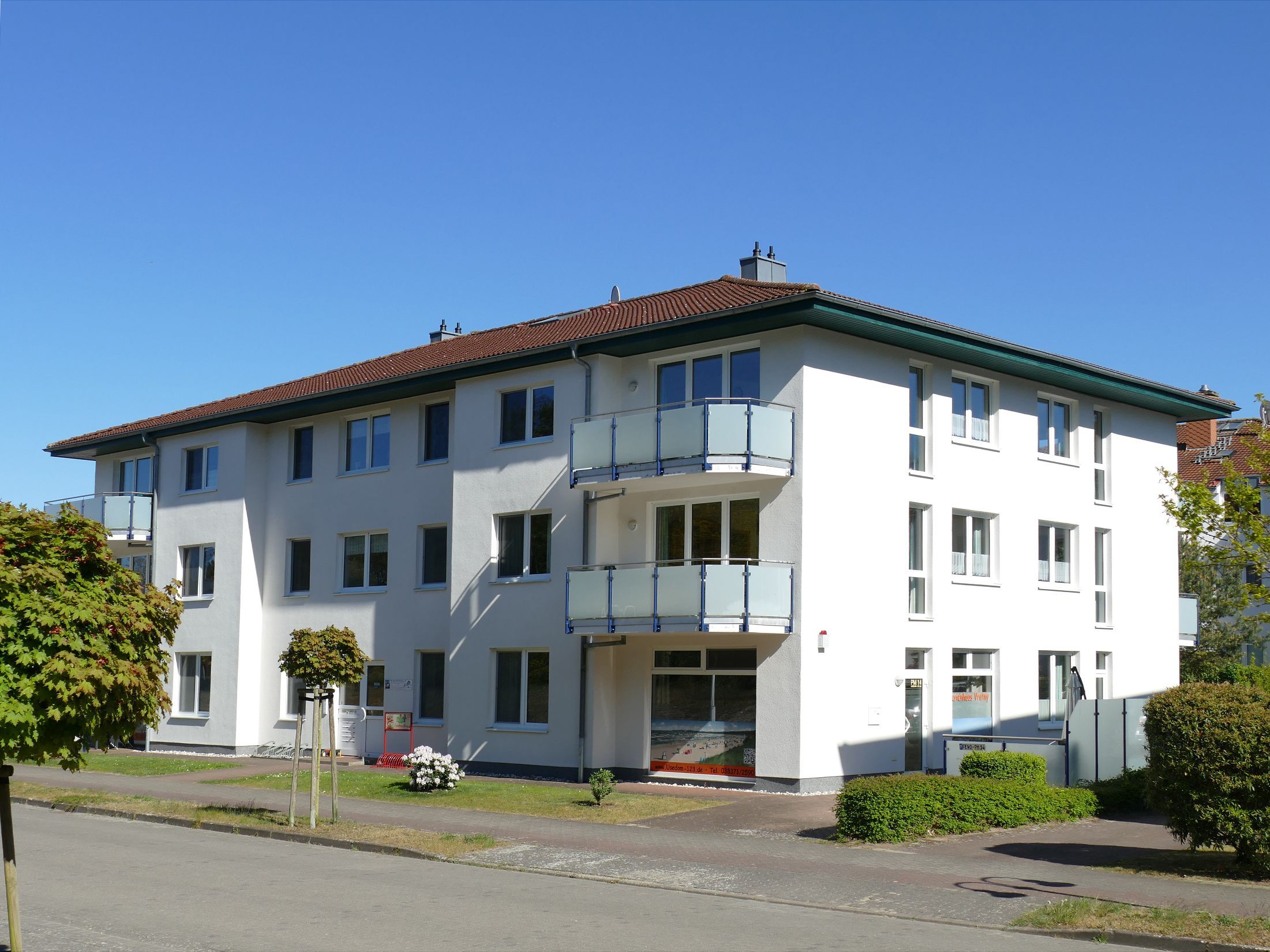 Das im Jahr 2000 neu erbaute Ferienhaus in Karlshagen bietet auf drei Etagen zwölf moderne Ferienwohnungen mit gehobener Ausstattung. In ruhiger, zentraler Lage direkt am Waldrand genießen Sie hier erholsame Urlaubstage im beliebten Ostseebad Karlshagen auf der Insel Usedom.