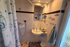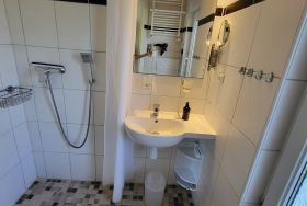Im separaten Schlafzimmer erwartet Sie ein komfortables Doppelbett (1,60 m Breite), ein Nachttisch und ein Kleiderschrank für Ihre persönlichen Dinge. Das Badezimmer ist mit WC und Dusche ausgestattet.