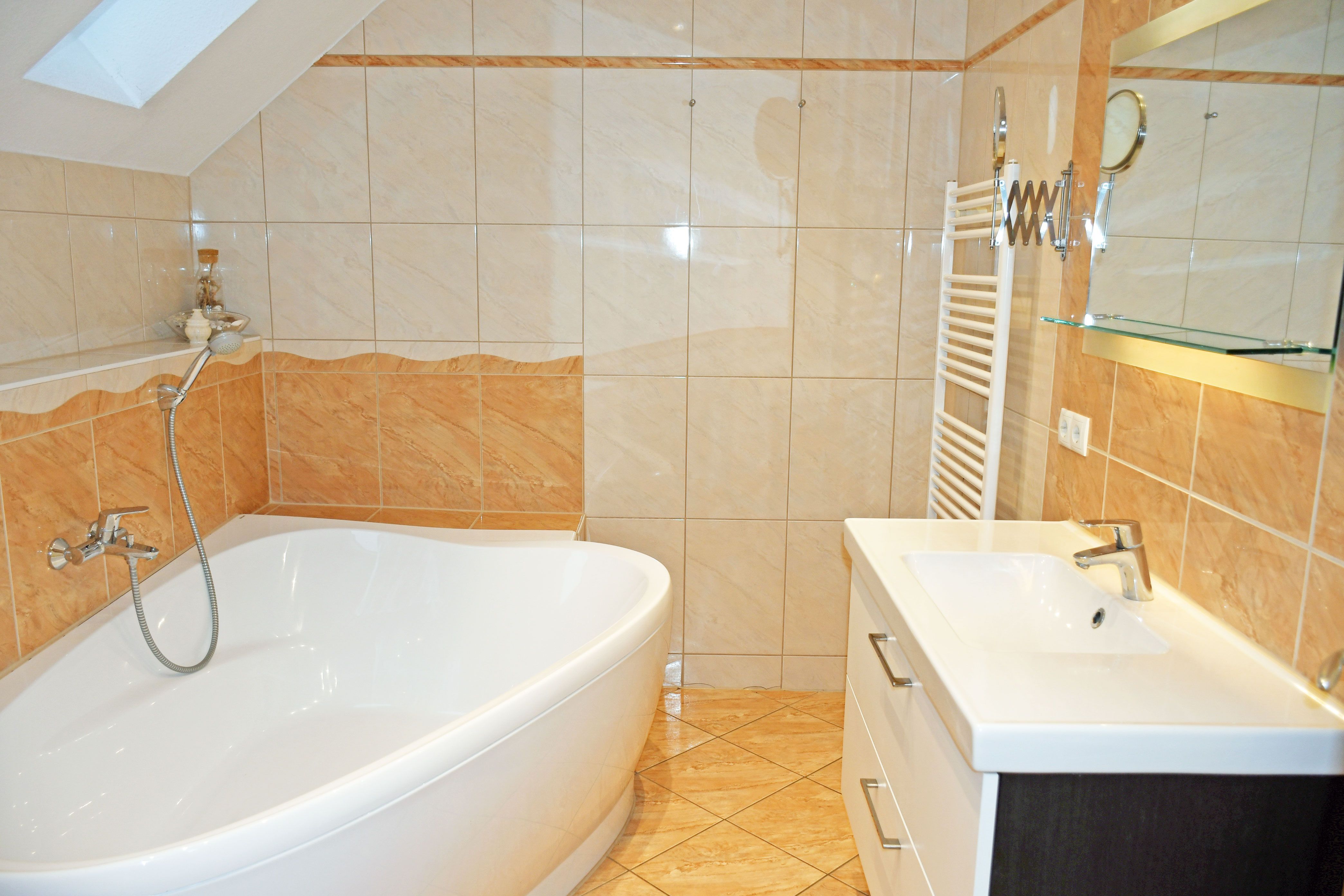 - 2. Bad mit Badewanne, Waschbecken, WC, Handtuchtrockner und Tageslicht