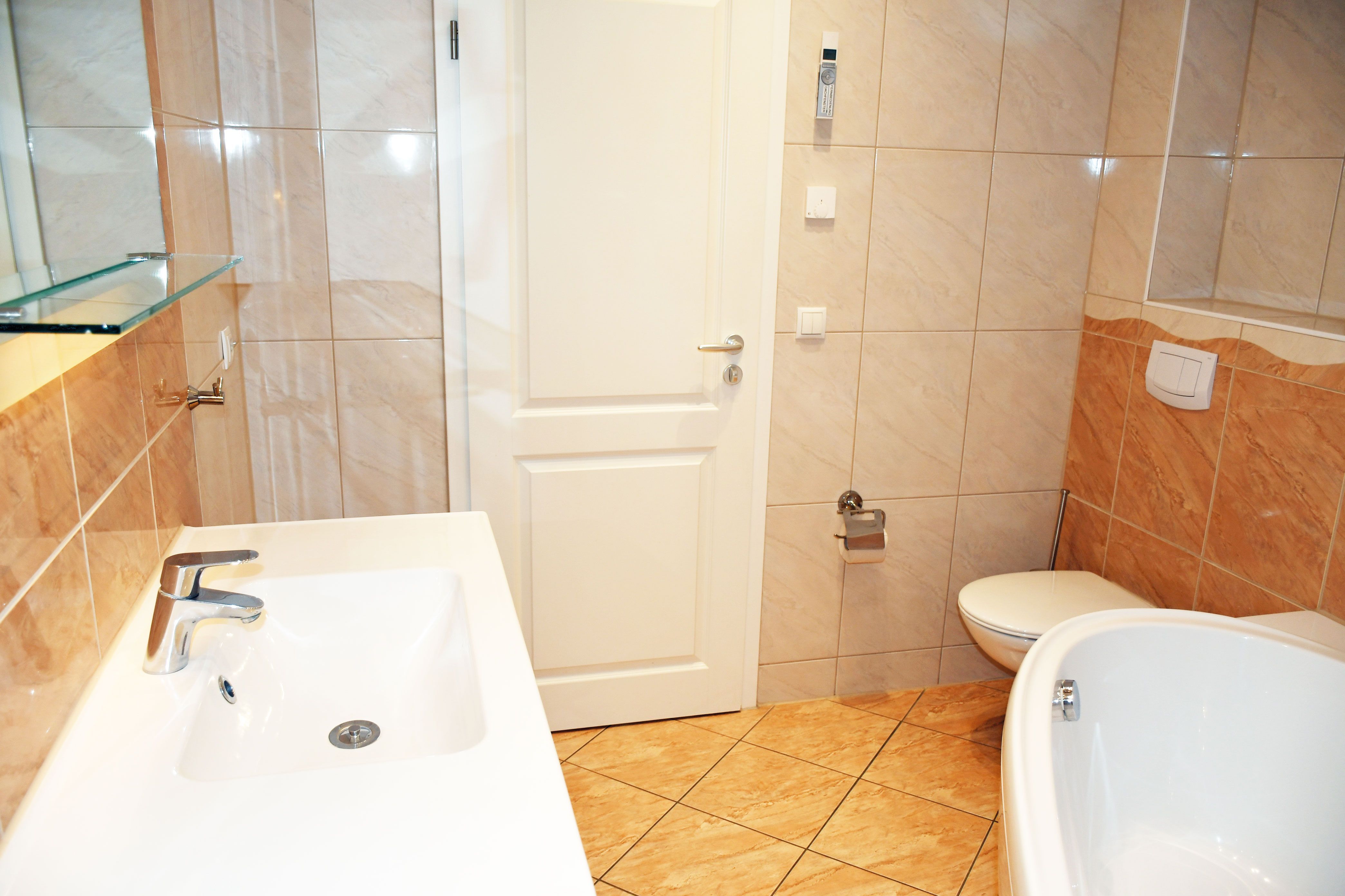 Zur Wohnung gehören 2 getrennte Schlafzimmer mit Doppelbett. Neben dem modernen Duschbad gibt es noch ein zweites romantisches Bad mit einer großzügigen Badewanne. Die hochwertige Küche grenzt an den Wohnbereich und bietet viel Platz zum Essen oder für einen geselligen Spielabend.
