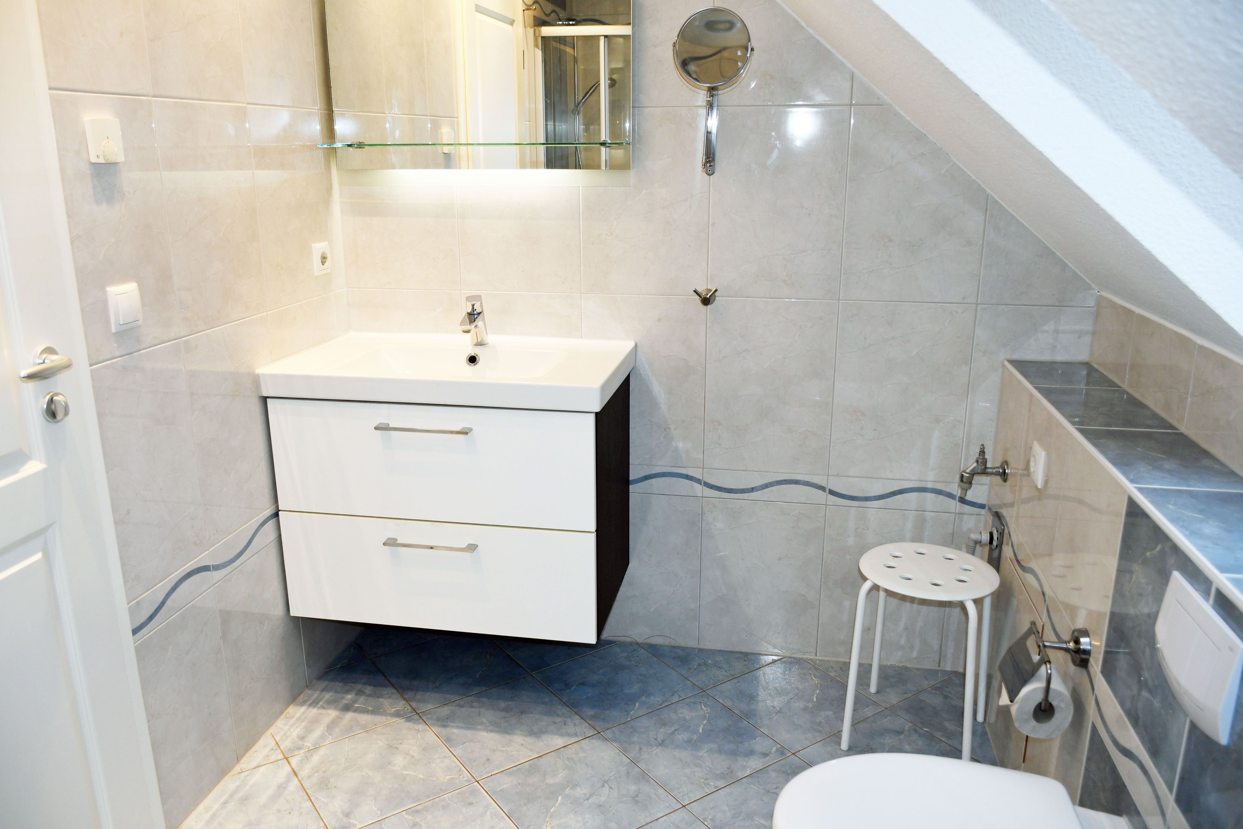 - 1. Bad mit Dusche, Waschbecken, WC, Handtuchtrockner und Tageslicht
