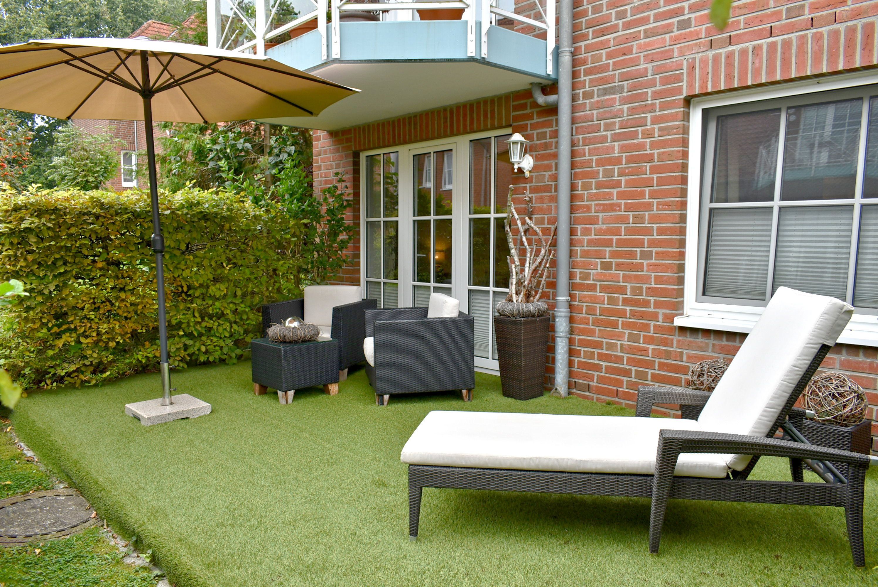 Terrasse: 2 Sessel, Liege, Sonnenschirm, Südlage, Tisch