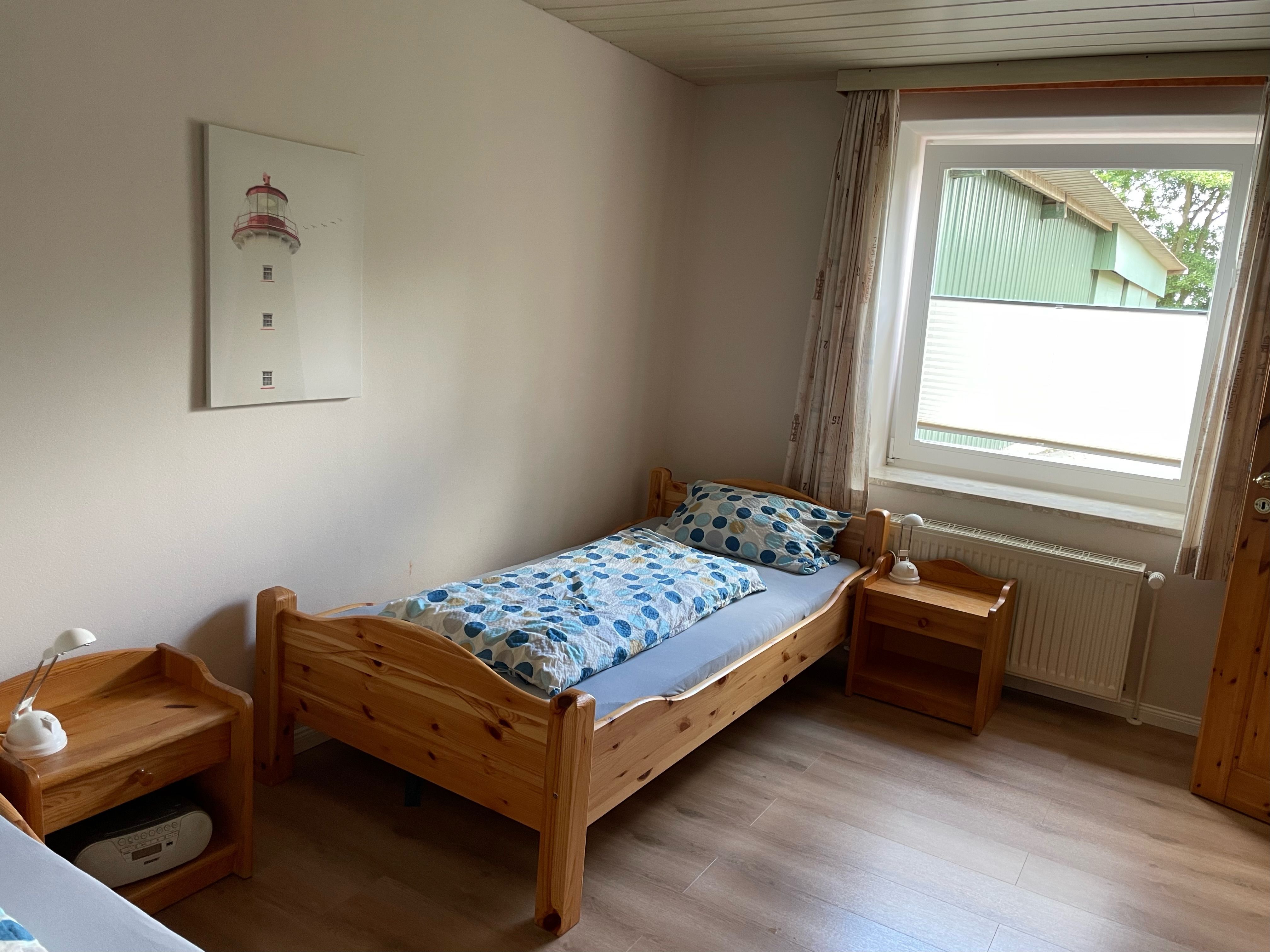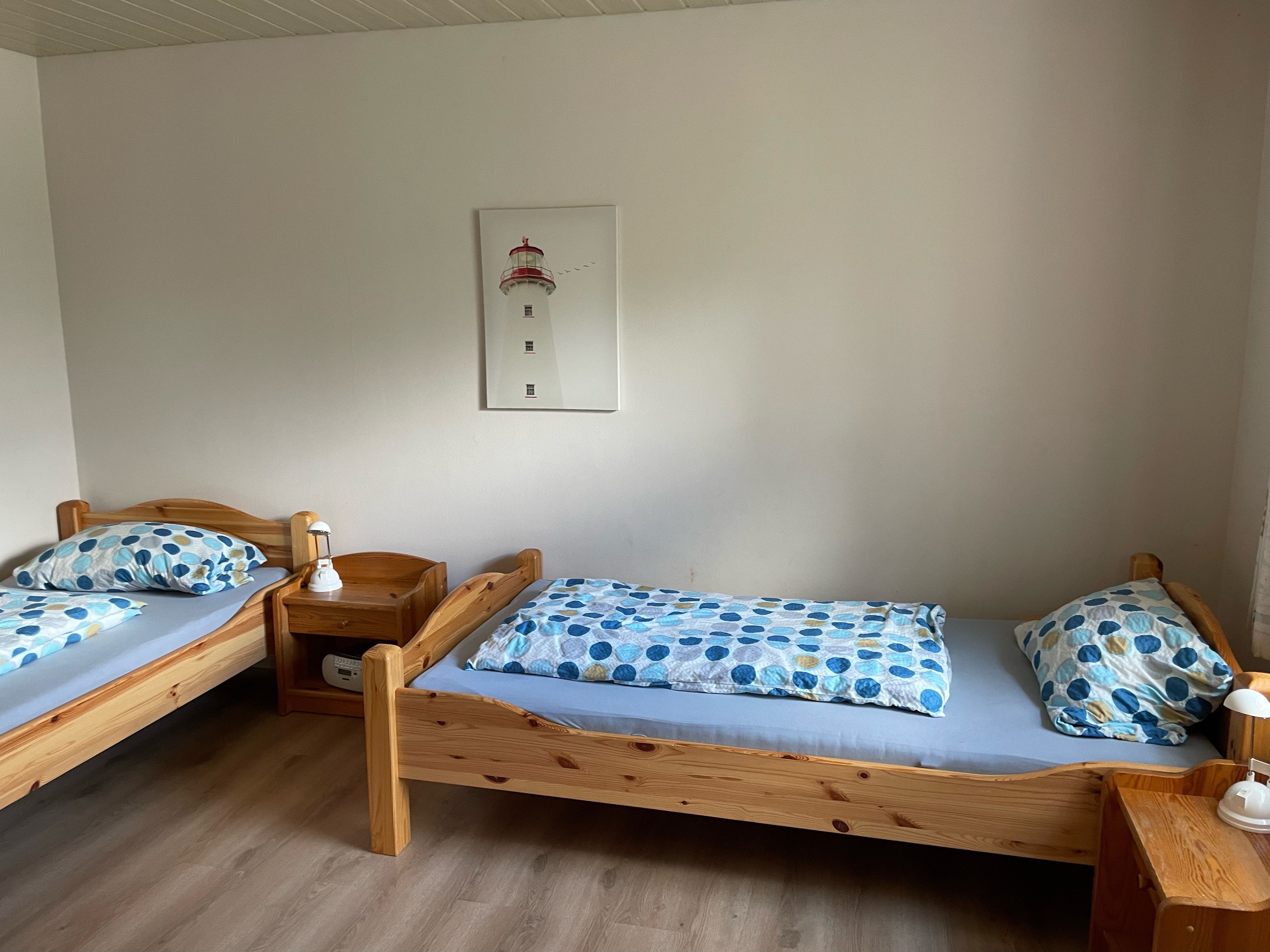 Das Kinderzimmer ist geräumig und mit zwei großen Einzelbetten und separatem Kleiderschrank ausgestattet und bietet ausreichend Platz zum Spielen.