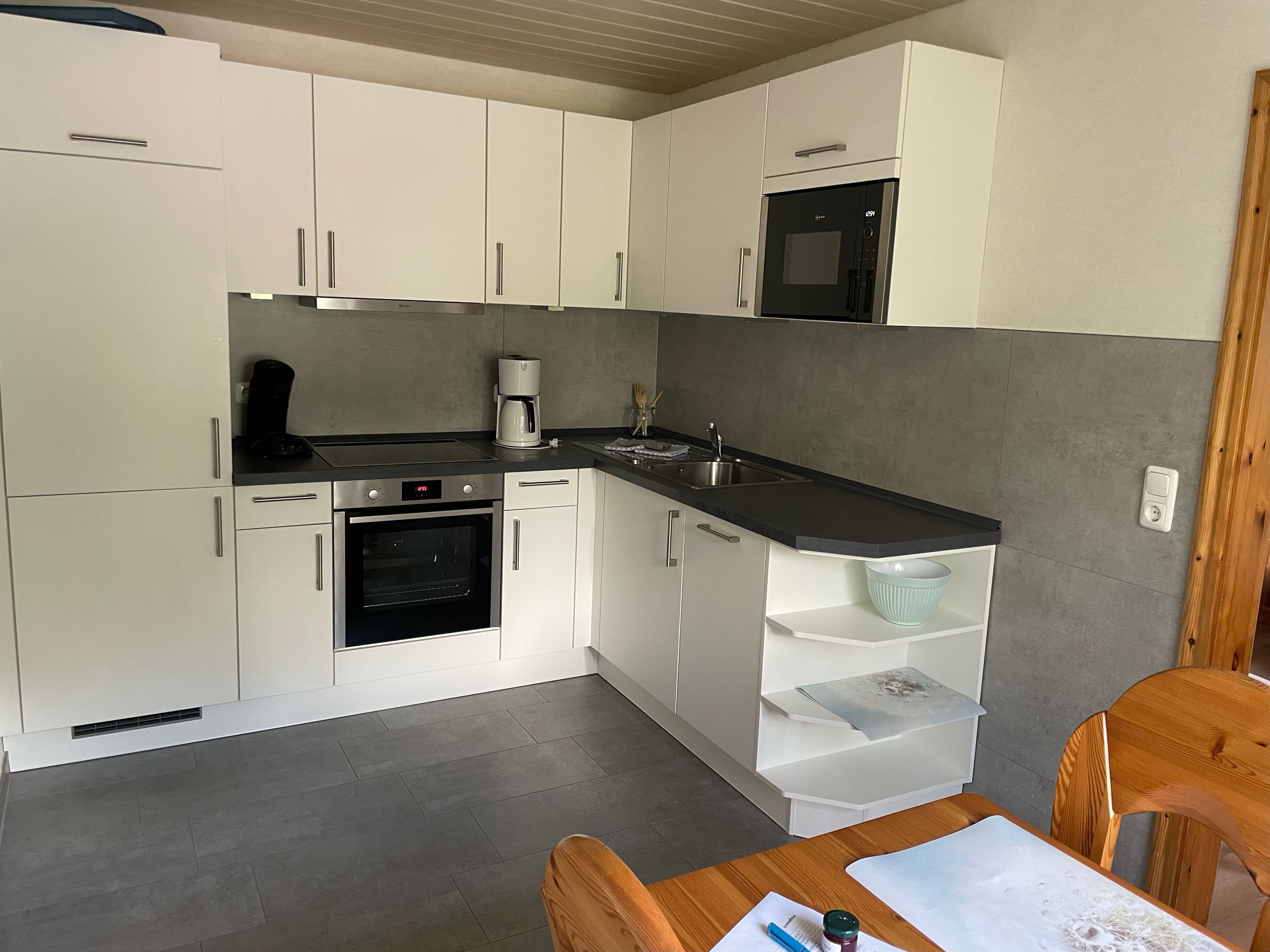Die separate Küche ist komfortabel und großzügig eingerichtet u.a. mit E-Herd, Kühlschrank, Spülmaschine, Mikrowelle und Kaffeemaschine.