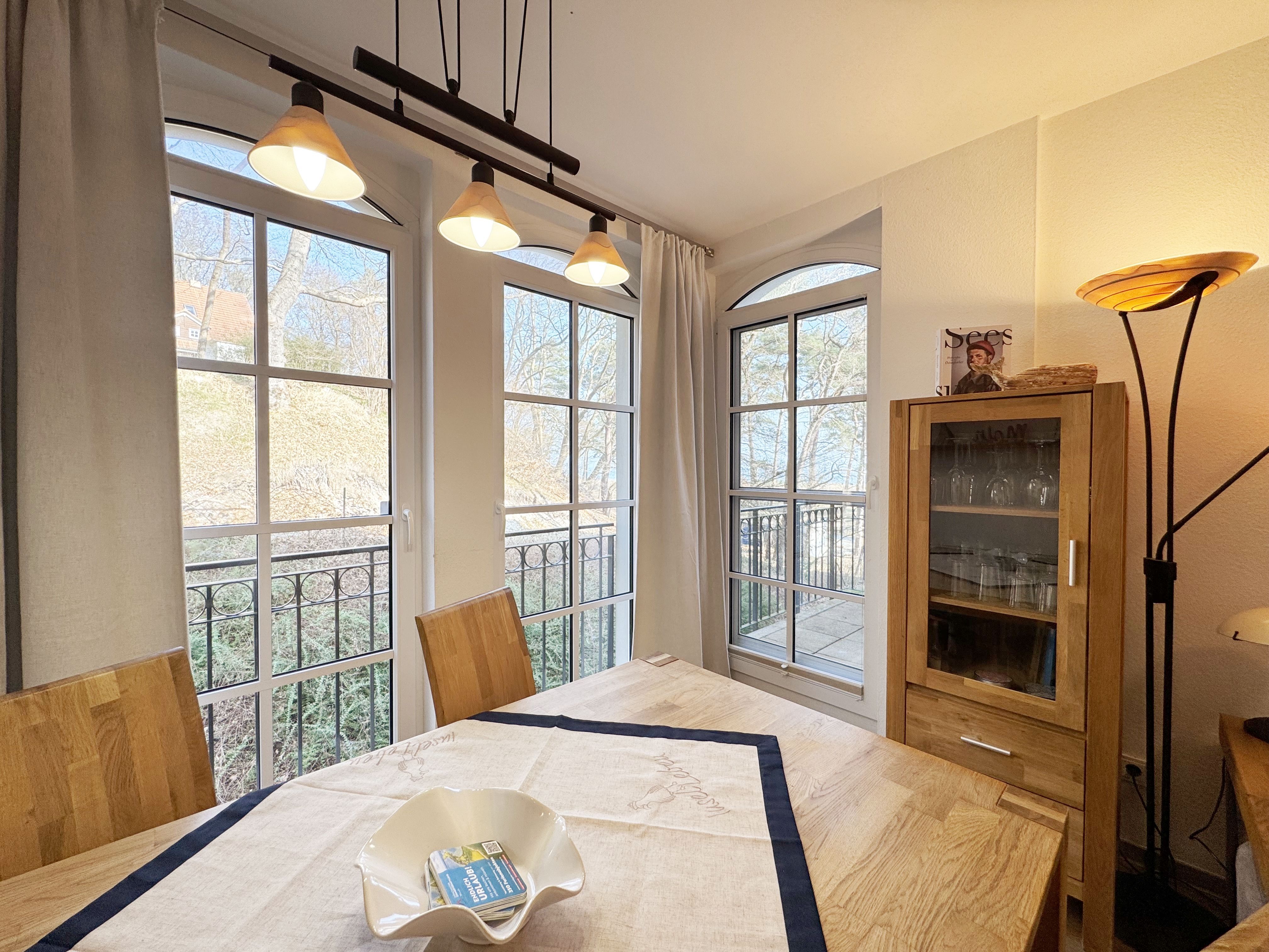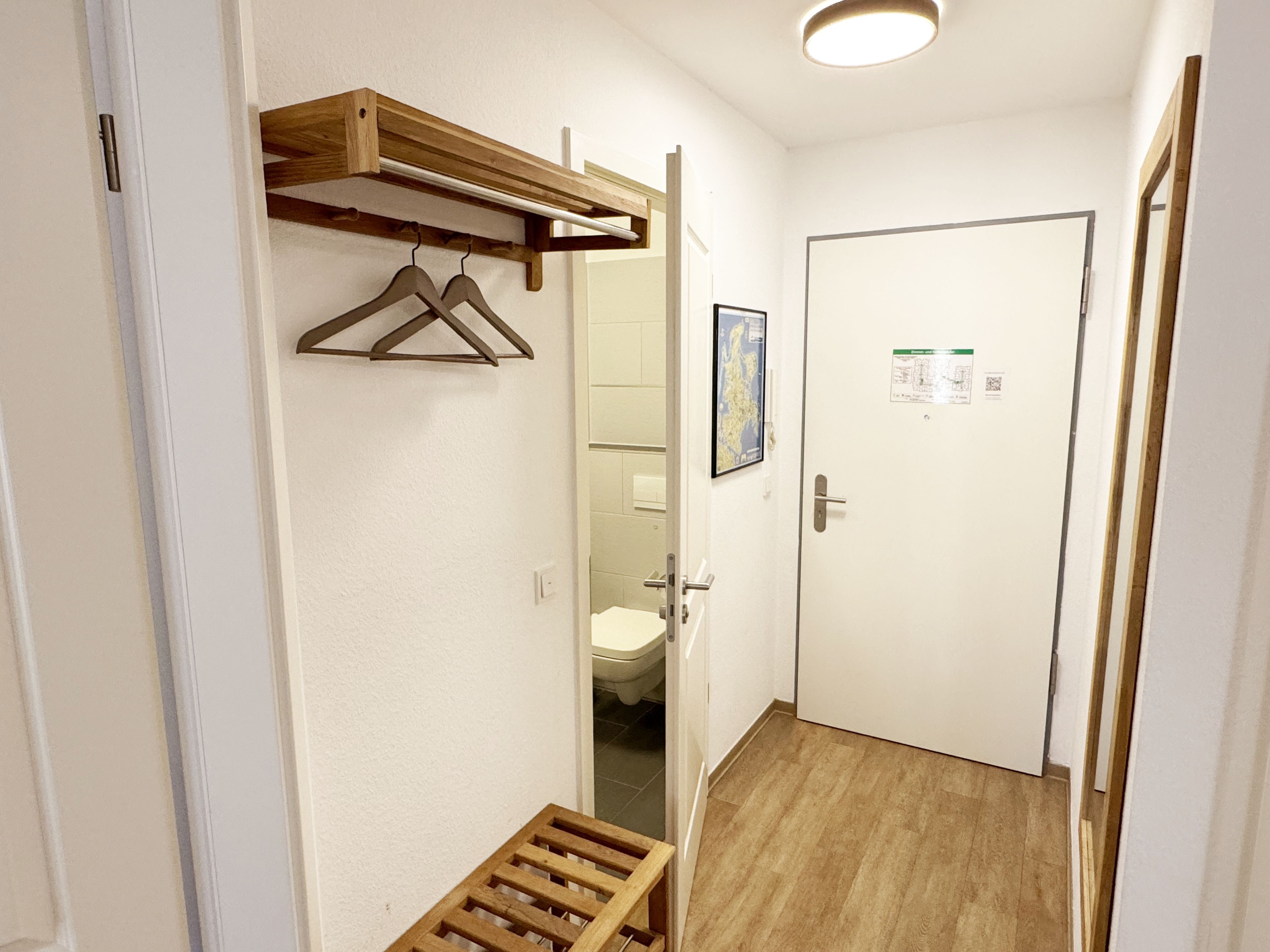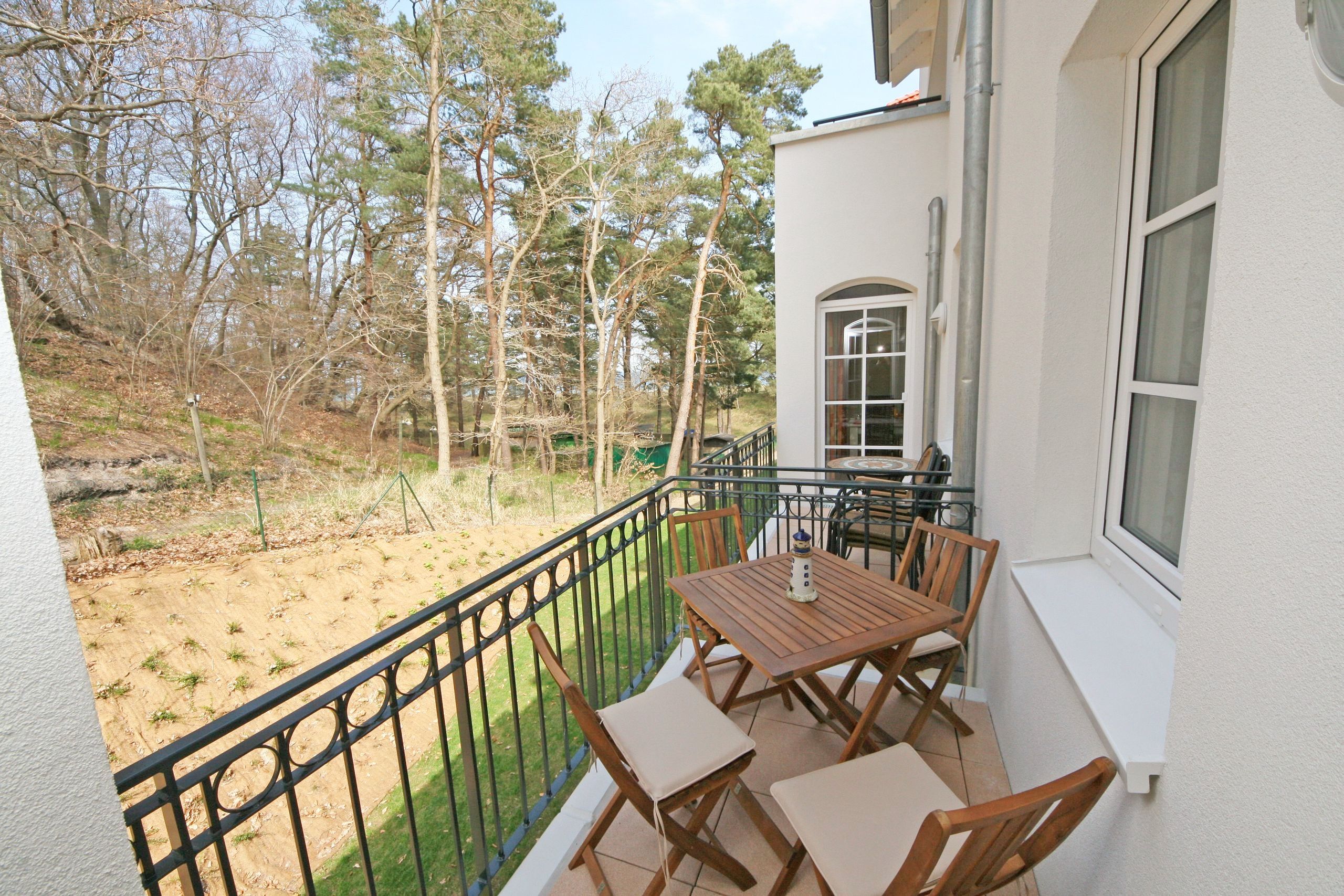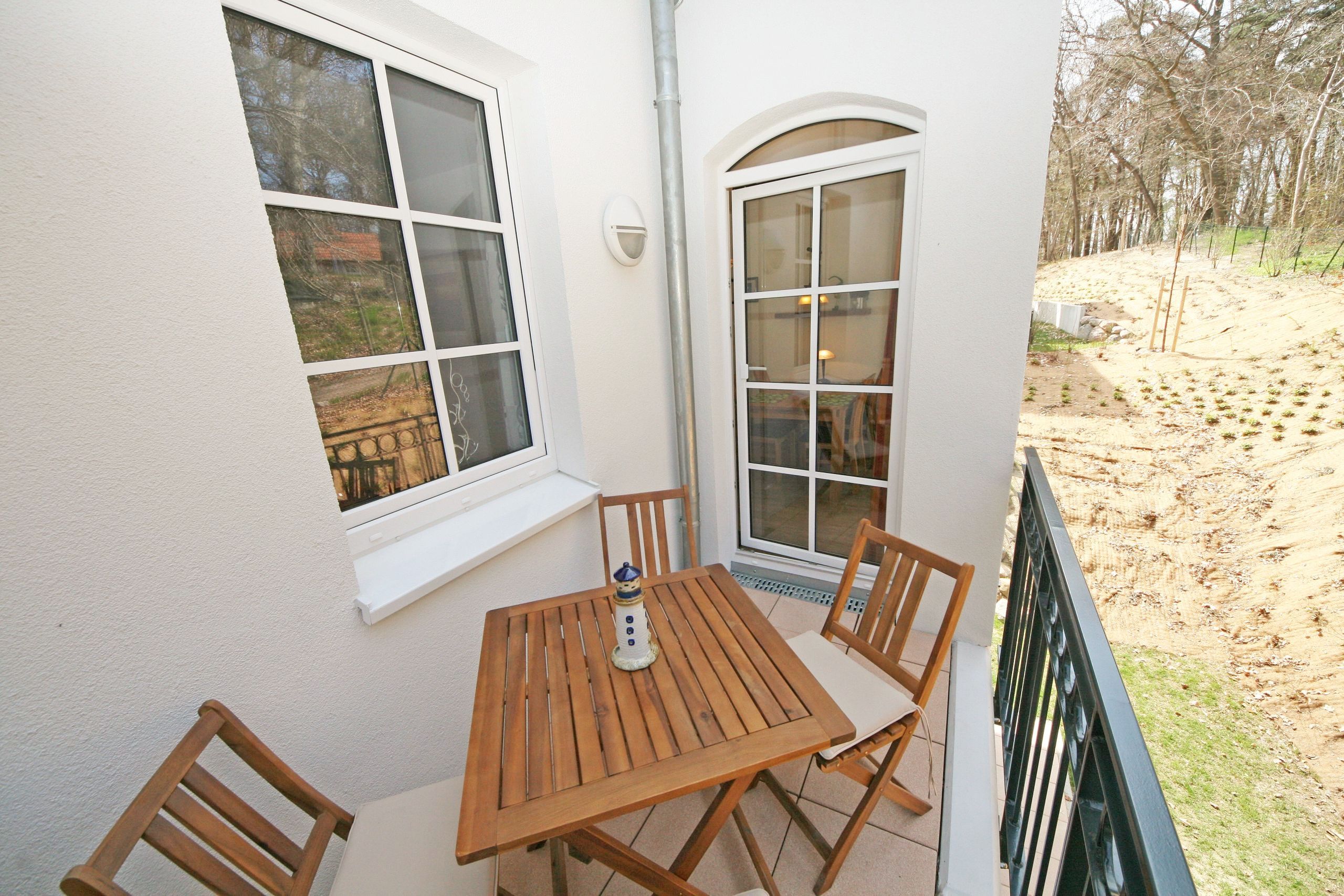 Unmittelbar am Kurpark des Ostseebades Baabe, umgeben von Kiefern befindet sich die neue Appartementanlage Meeresblick. Die Ferienanlage besteht aus 3 freistehenden Häusern und ist nur ca. 80 Meter vom feinen Sandstrand entfernt. An die hiesige Bäderarchitektur angelehnt fügt sich die Meeresblickanlage wohltuend in die Umgebung ein. Die Ferienwohnungen verfügen über einen hohen Komfort und lassen Ihren Urlaubstraum wahr werden. Im Haupthaus befindet sich ein Wellnessbereich mit Innenpool, Sauna und Ruheraum (inklusive) der zur Entspannung einlädt. Eine hauseigene Tiefgarage sorgt dafür, dass Ihr PKW sicher untergebracht ist. Cafés und Restaurants laden in der Anlage zum Verweilen ein. Ein weiteres Highlight ist der Müther Schalenbau (Restaurant Inselparadies Baabe), welches saniert, restauriert und in die Meeresblickanlage liebevoll integriert wurde. Von hier aus haben Sie einen fantastischen Blick auf die weite Ostsee. Die Wohnung Strandmuschel (A 1.23) befindet sich im Haupthaus A im 1. Obergeschoss und verfügt über einen Balkon mit eingeschränktem Meerblick.