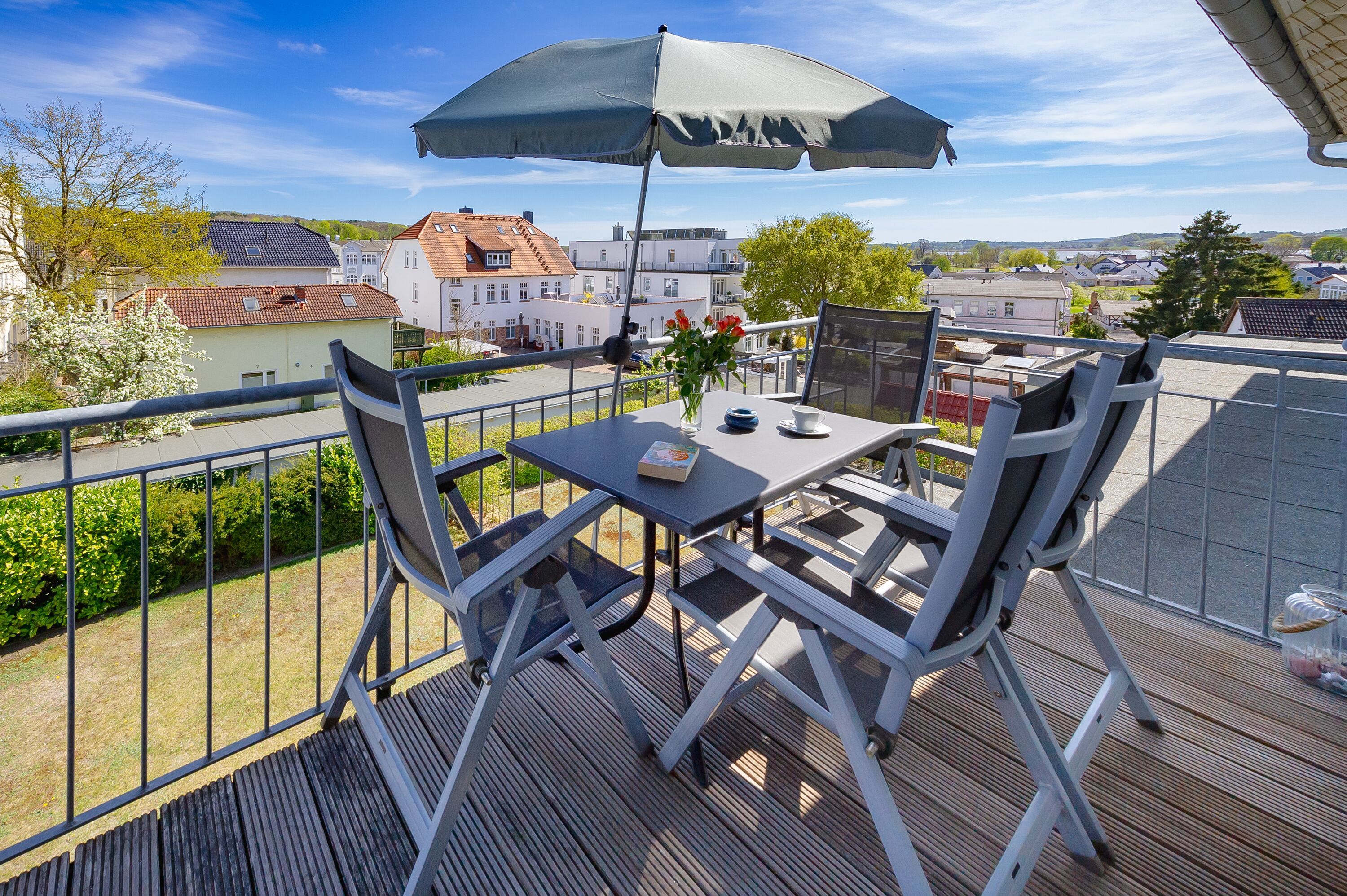 Mit herrlichem Blick über die Dächer von Sellin und bis ins idyllische Hügelland rund um den Selliner See erwartet Sie diese rund 61 qm große Maisonettewohnung im Ober- und Dachgeschoss von Haus 2. Wunderbar ruhig und zentral gelegen, sind es von hier aus über die Wilhelmstraße mit ihren Geschäften und Restaurants nur wenige Gehminuten bis zum Hauptstrand mit der berühmten Seebrücke.
