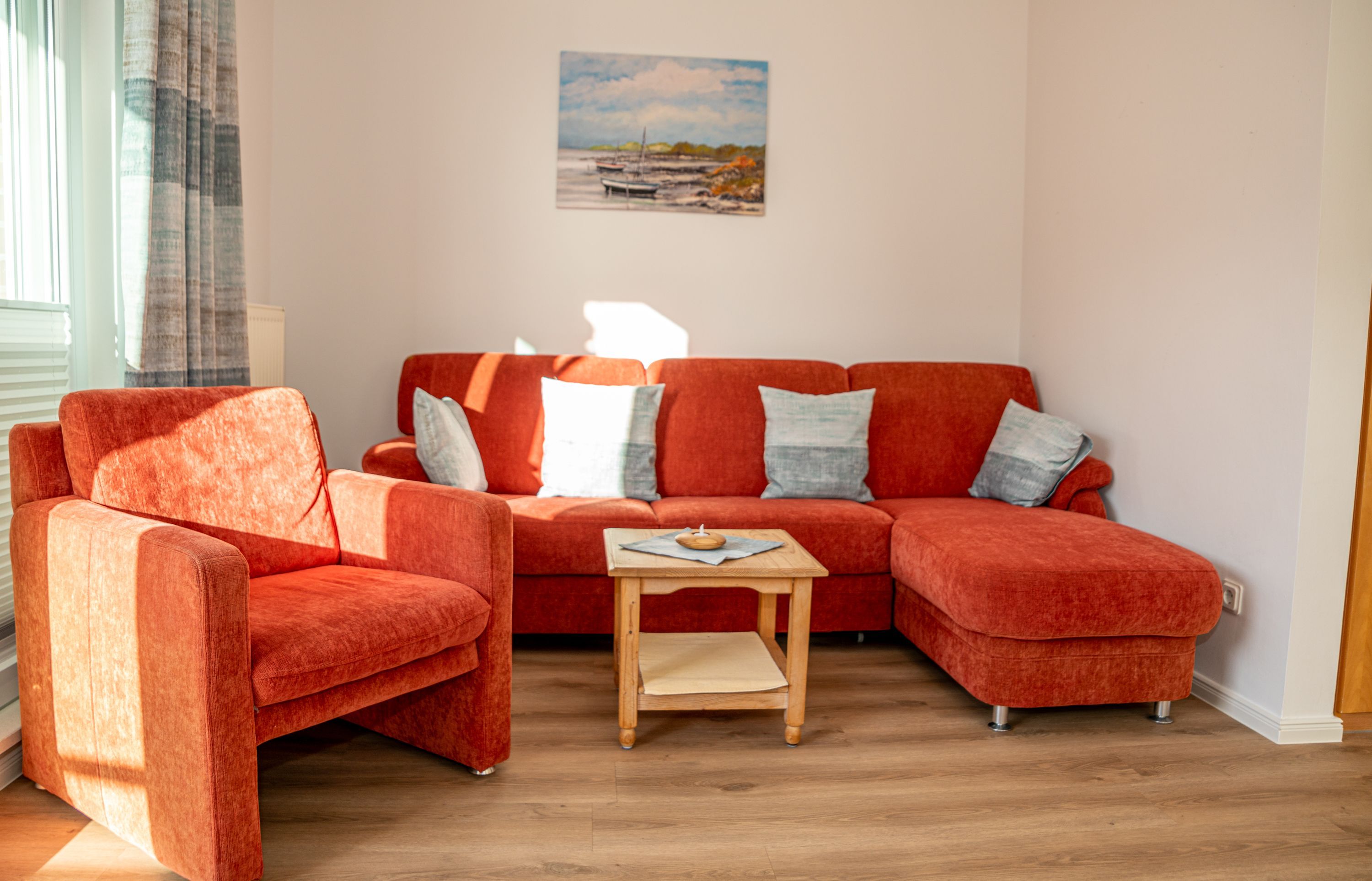 - Wohnzimmer mit Essgruppe und Schlafcouch