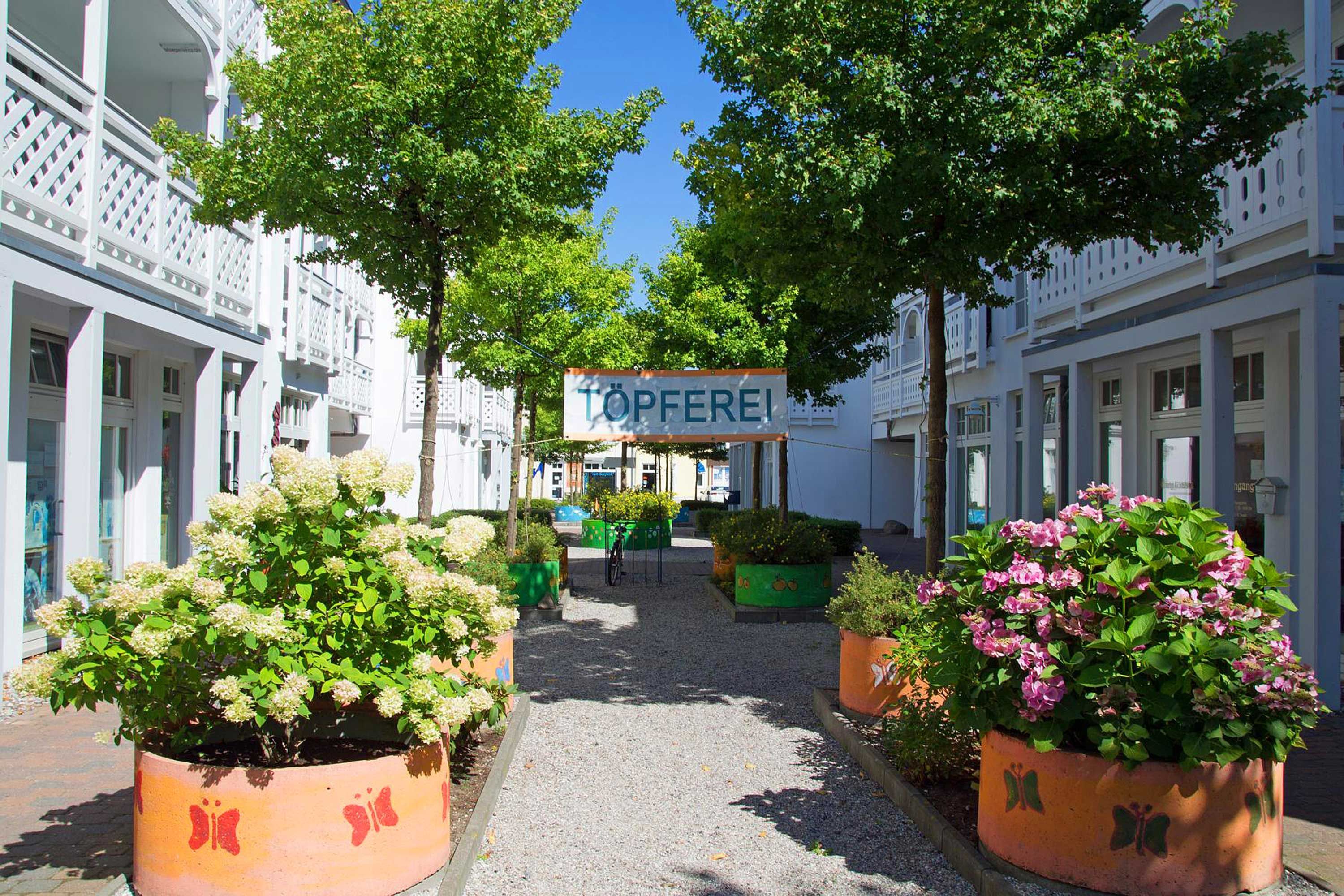 Der Bahnhof der historischen Kleinbahn Rasender Roland ist nur 300 Meter entfernt, ebenso die Tourist-Information.