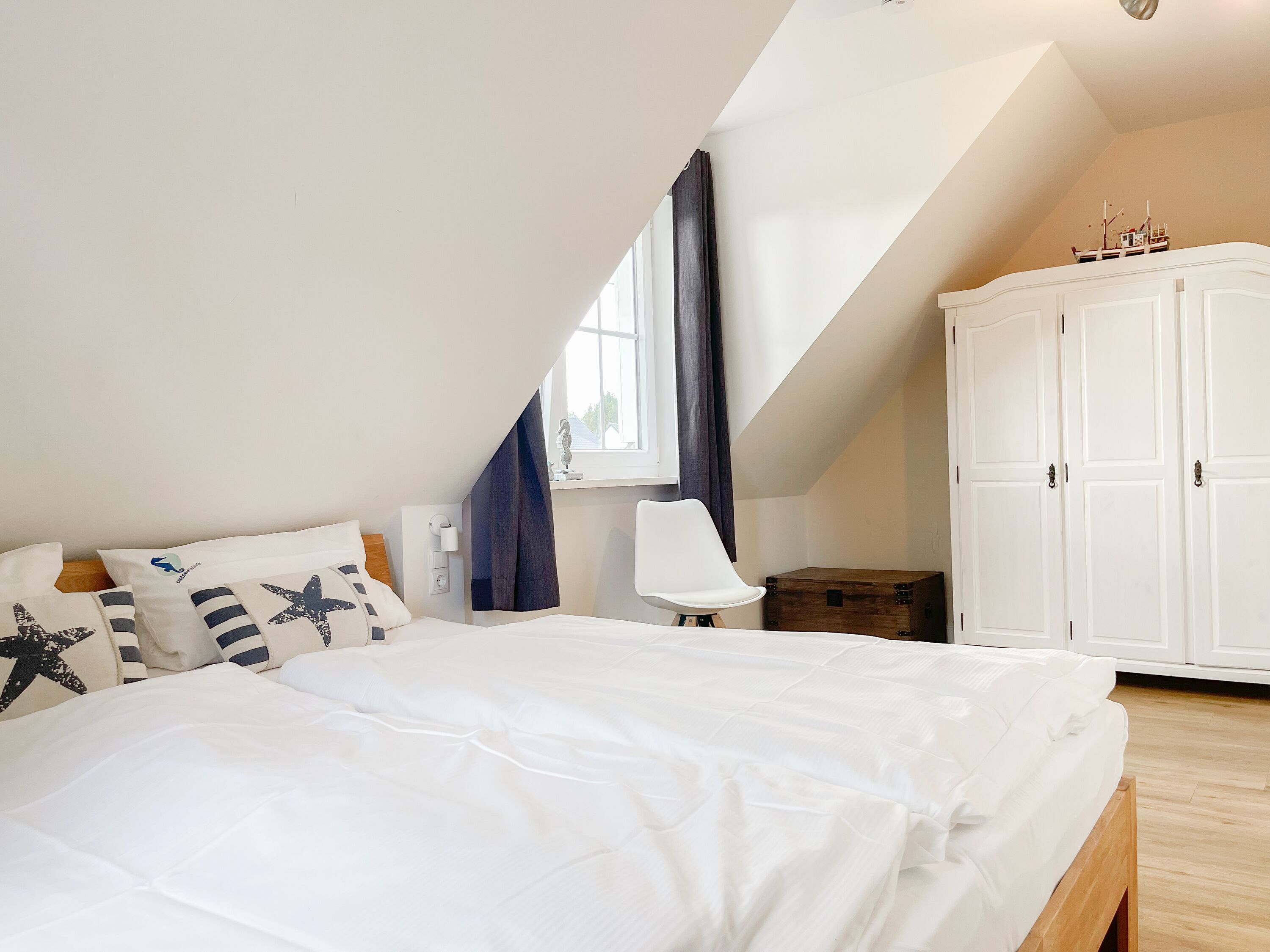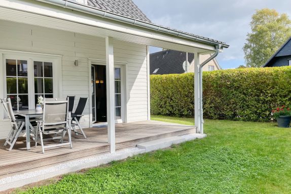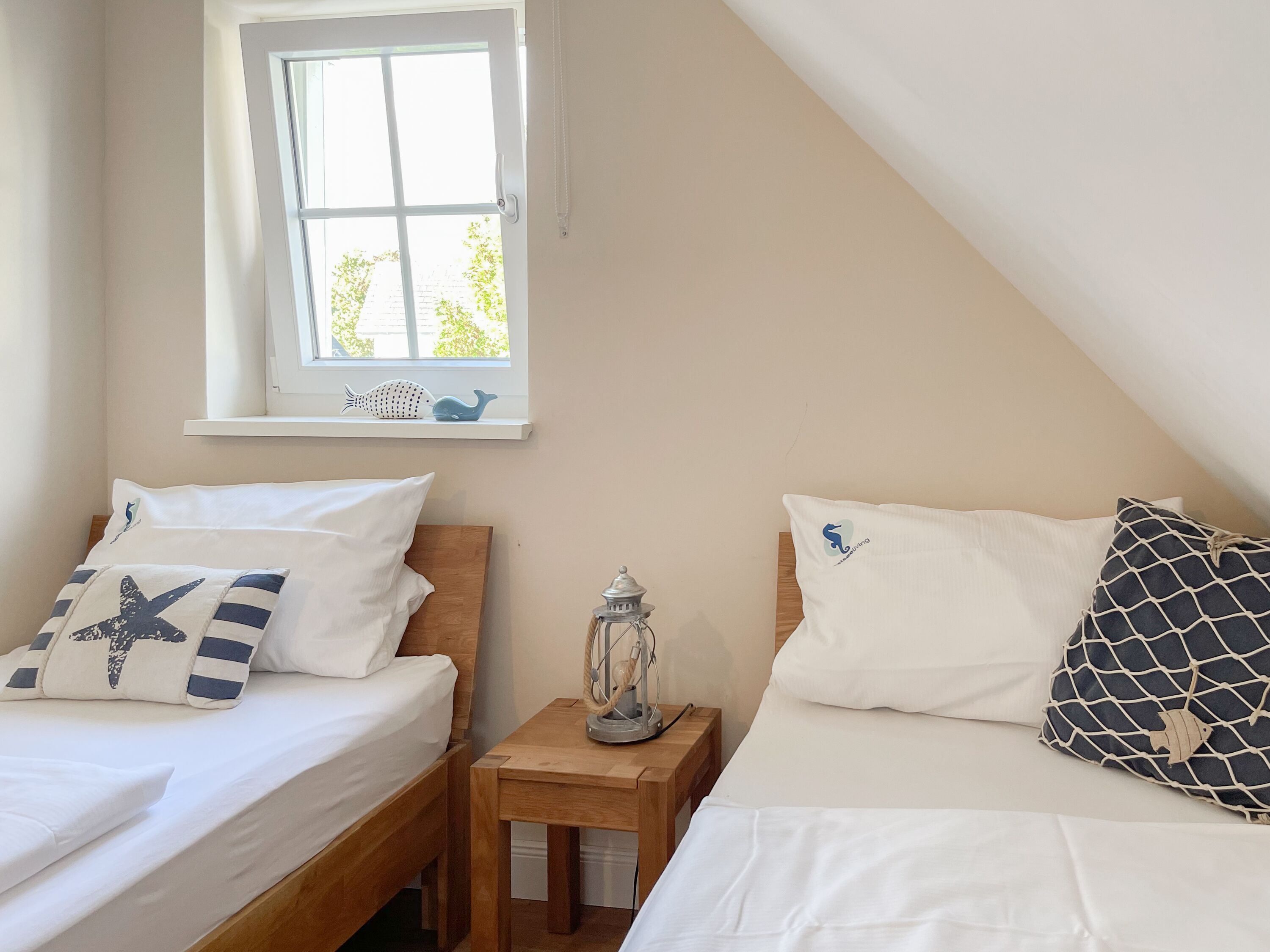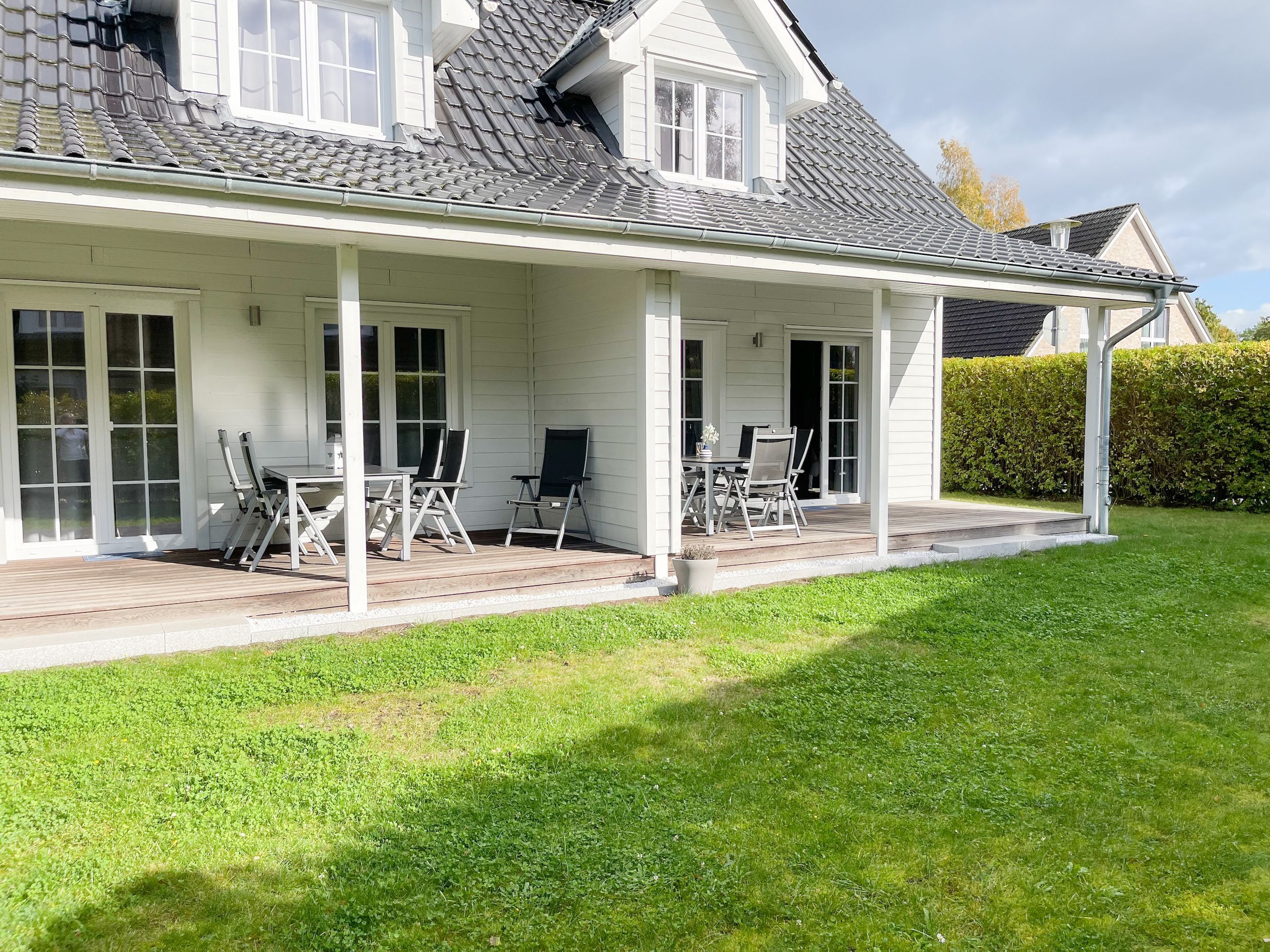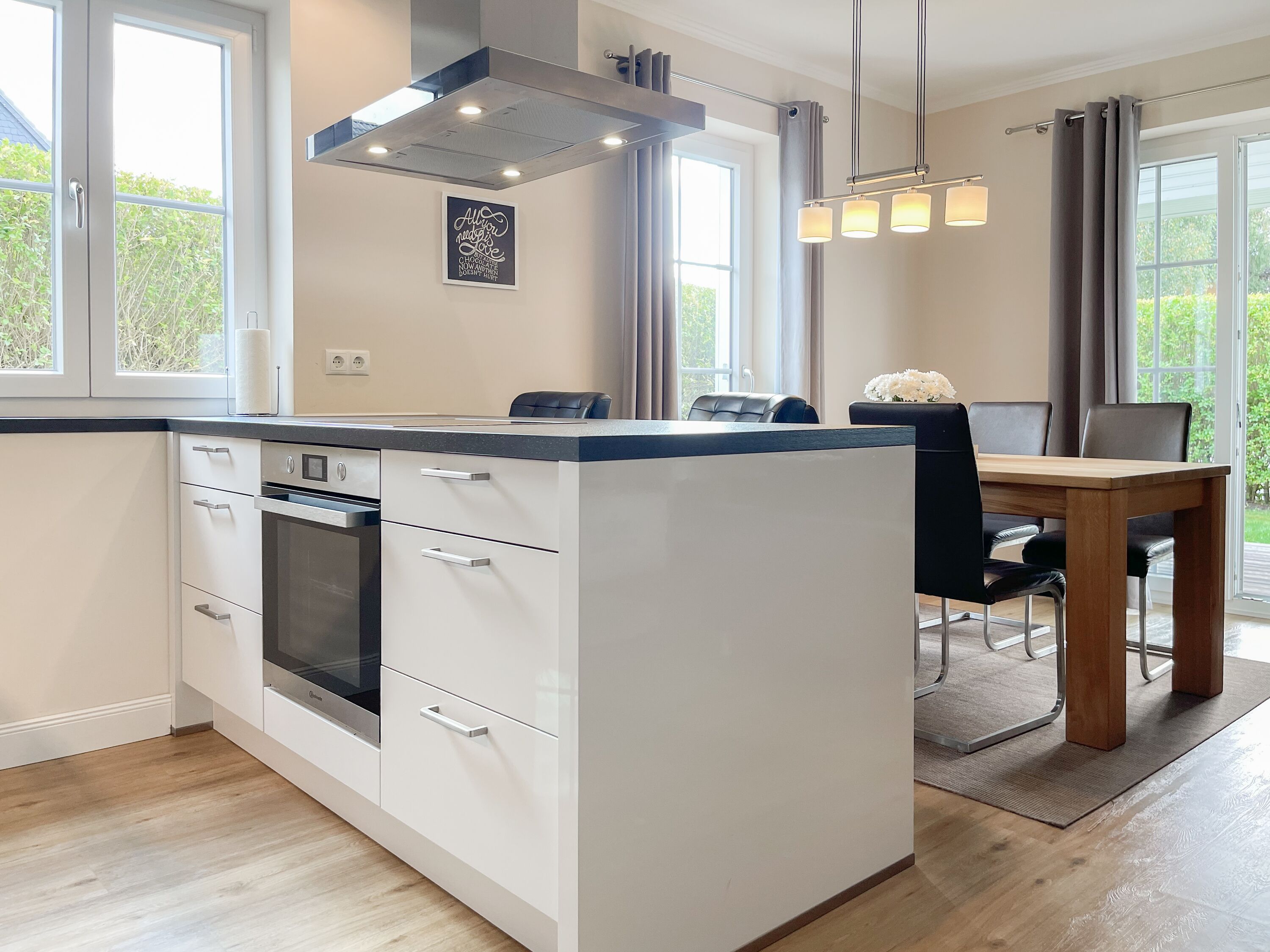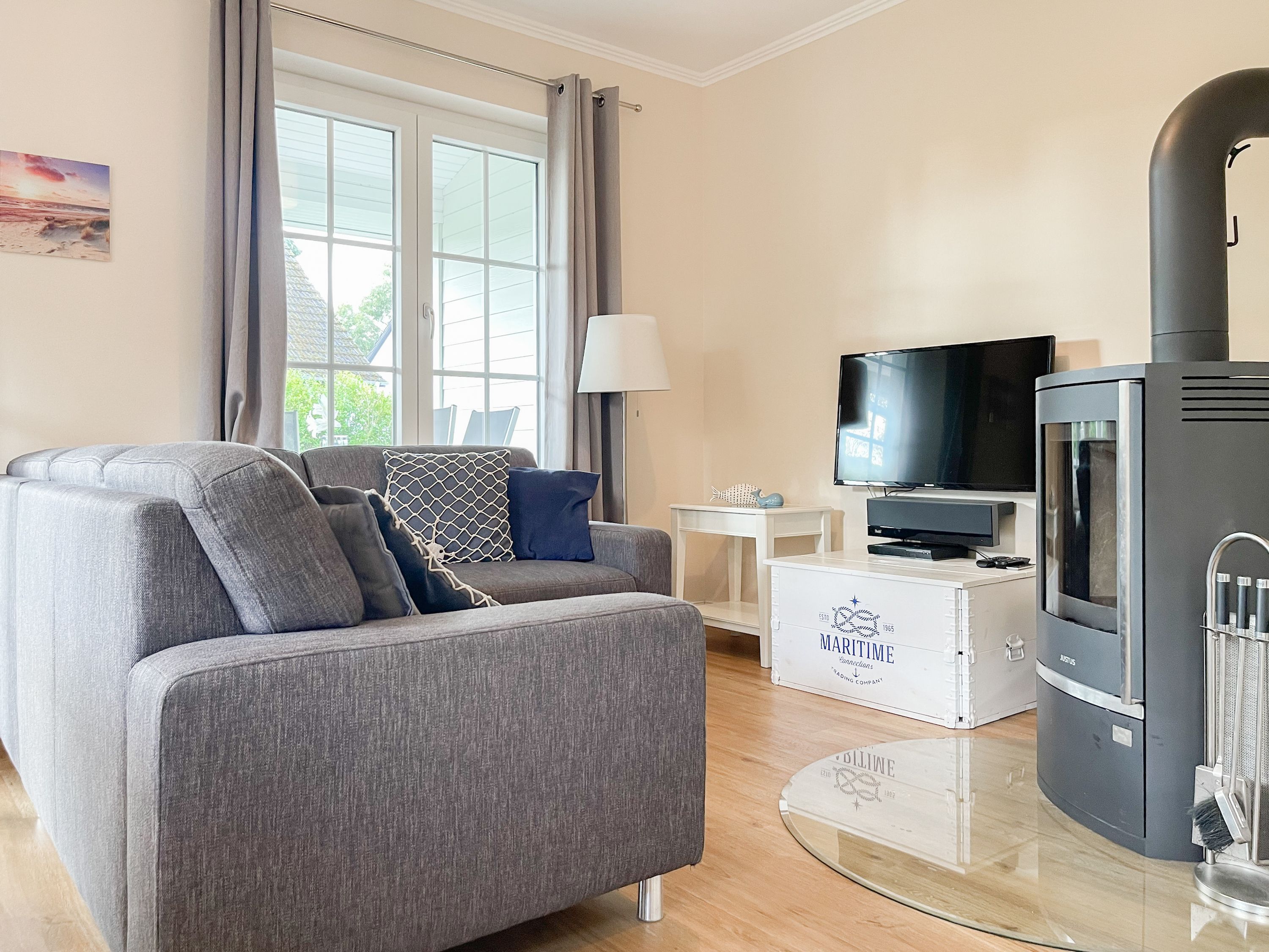 Es erwartet Sie ein wunderschönes Doppelhaus im Hampton Style. Sonnige Räumlichkeiten und die hochwertige Ausstattung sorgen für hohen Wohnstandard in einem schönen Ambiente. Mit 3 Schlafzimmern, einem modernen Bad mit Dusche und Badewanne sowie einem zusätzlichen Gäste WC, bietet das Haus auf  75 qm Wohnfläche ausreichend Raum für 5 Personen, um einen erholsamen Ostseeurlaub ganz nah am Strand zu verbringen. Im Erdgeschoss erwartet Sie ein gemütlich eingerichteter Wohnbereich mit Sofa, TV und Kaminofen, ein anschließender Essbereich sowie eine offene Einbauküche in bester Ausstattung zum gemeinsamen Kochen. Die vorgelagerte überdachte Veranda in Südausrichtung mit Garten ist ein herrlicher Platz zum Entspannen oder für Outdoor Aktivitäten. Ein Schlafzimmer, ausgestattet mit einem Einzelbett (90x200) und einer Kommode  sowie ein Gäste WC, sind ebenfalls im Erdgeschoss untergebracht. Im Obergeschoss gibt es zwei separate Schlafzimmer, eines ist mit einem Doppelbett (180x200), einem Kleiderschrank und einem weiteren  TV ausgestattet. Das andere ist mit 2 Einzelbetten (90x200), einem Kleiderschrank und einem Schreibtisch für das Homeoffice eingerichtet. Das hochwertige Bad mit Badewanne, Dusche und integrierter Waschmaschine, ist modern und lichtdurchflutet. Die Fenster der Schlafzimmer lassen sich abdunkeln (keine Blackout Verdunkelung). WLAN steht selbstverständlich zur Verfügung.