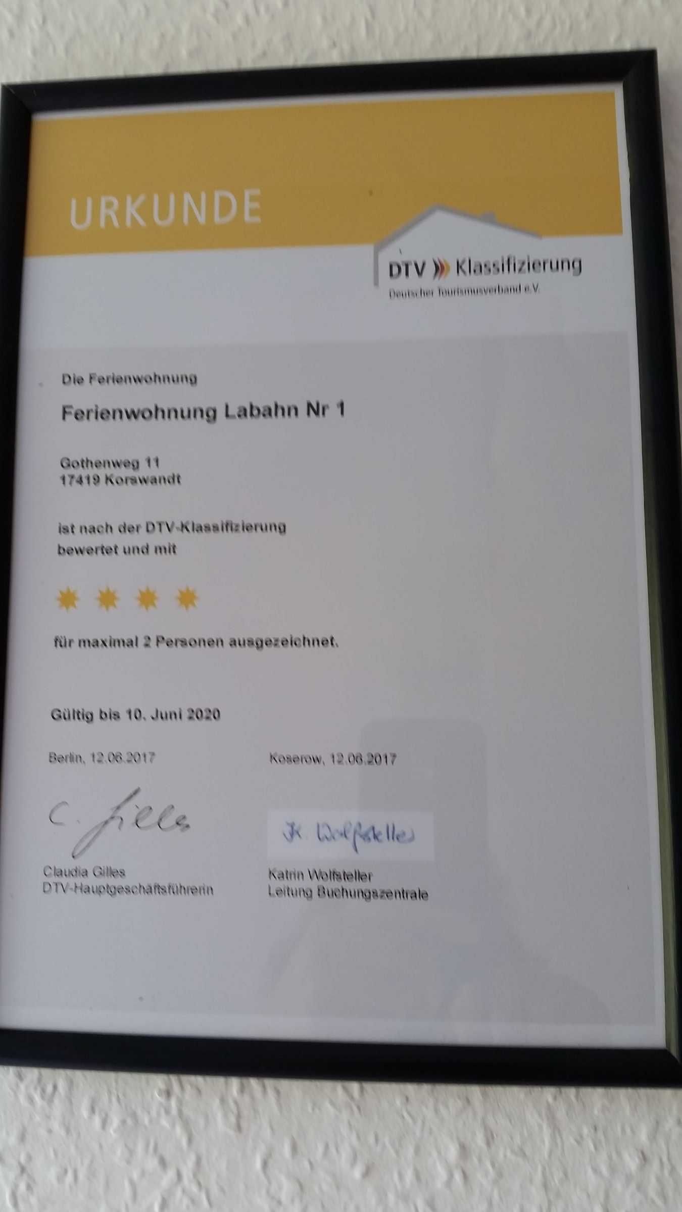 Die Ferienwohnung ist mit 4 Sternen DTV- klassifiziert.
