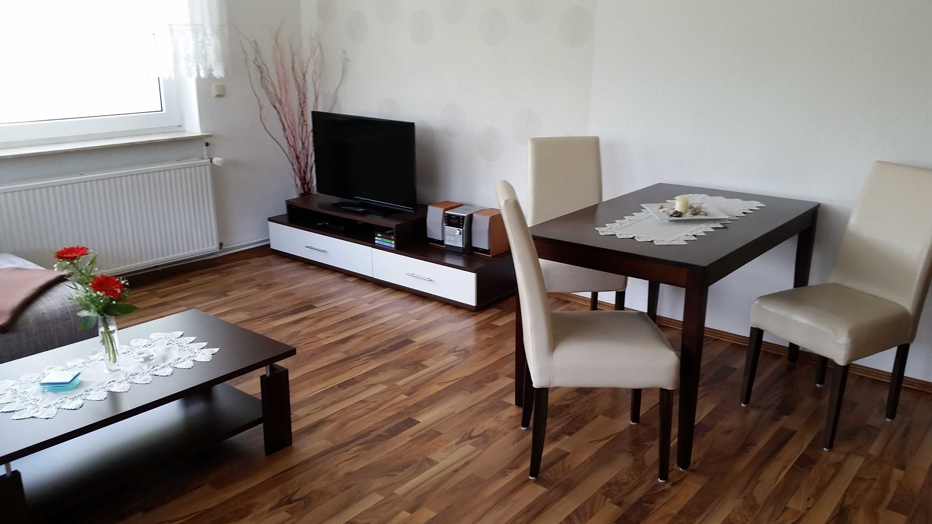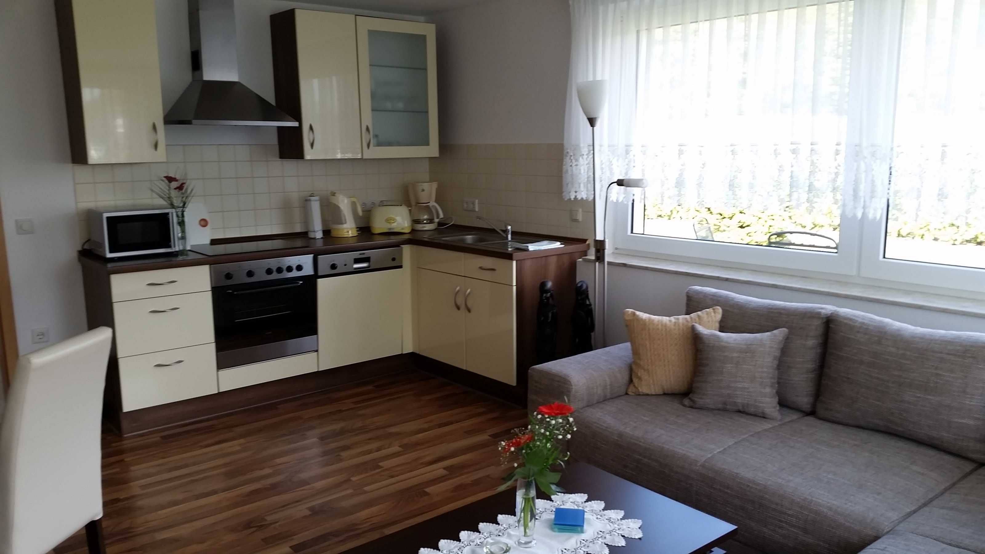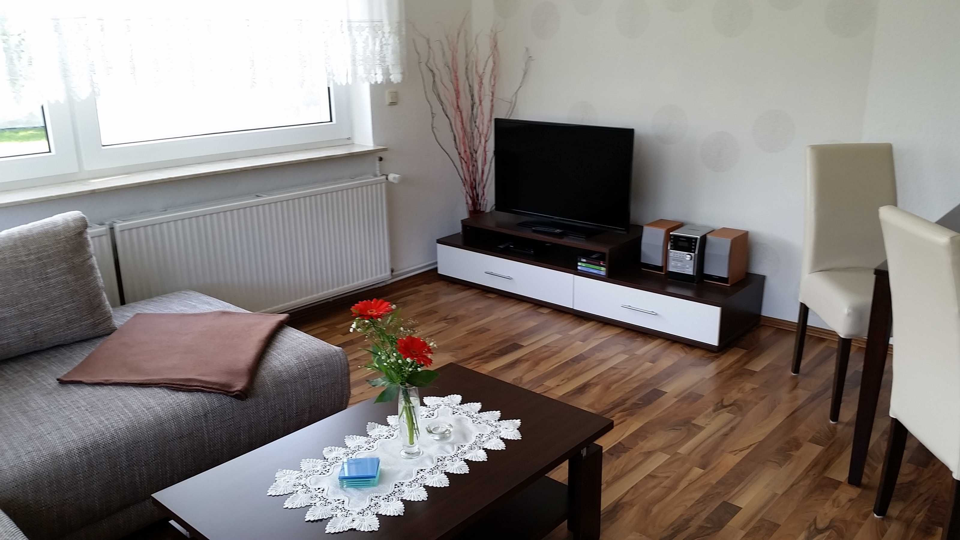Die 2 Raum-Wohnung (50 m²) für max. 3 Personen sind hell und modern eingerichtet. Das Wohnzimmer ist mit einer Eckschlafcouch ausgestattet, so wie Flachbild-TV, Radio und HiFi-Anlage.