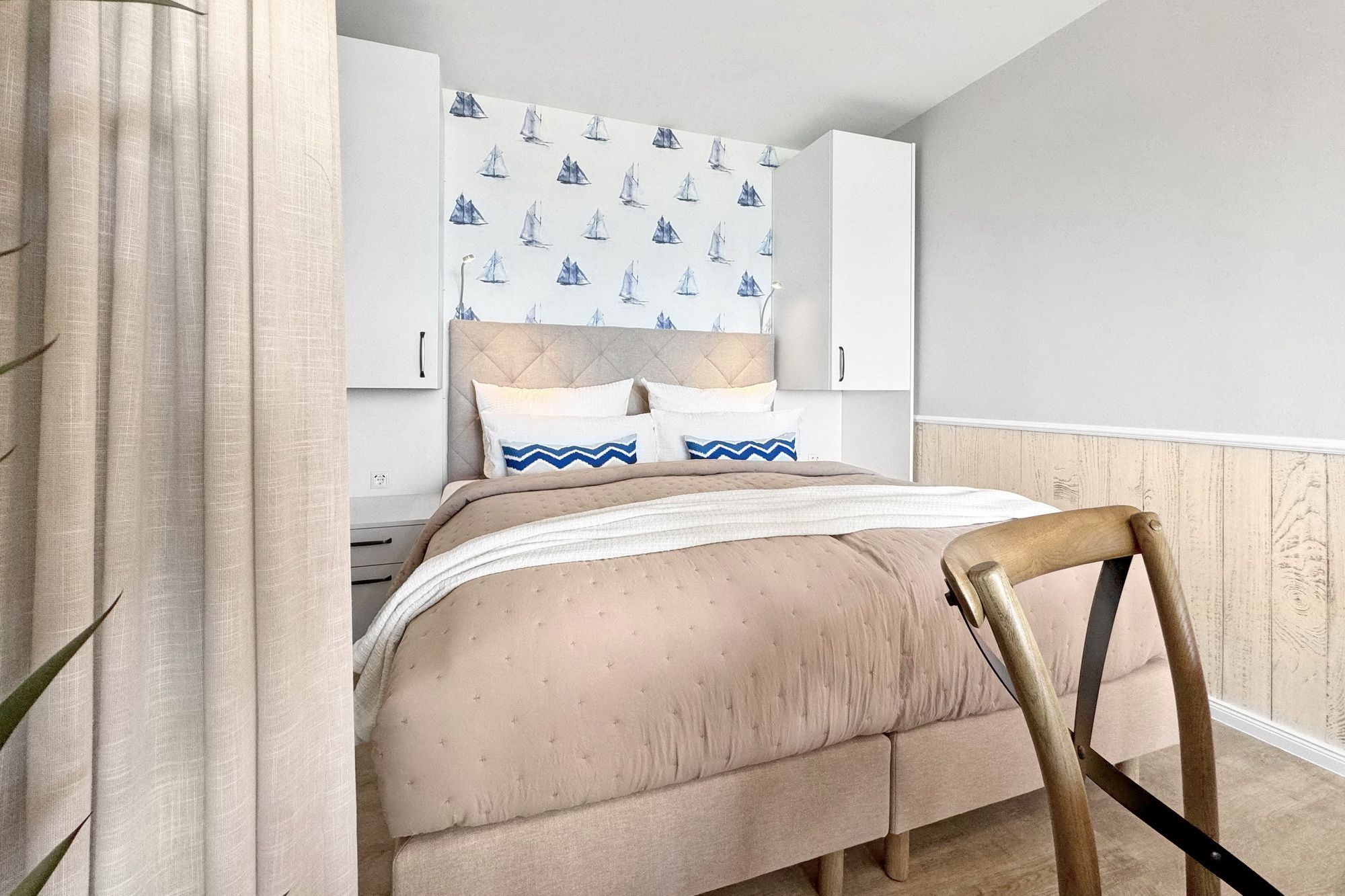 Die Ferienwohnung liegt in Heiligenhafen und bietet Platz für maximal 4 Personen. Mit 47?m² Wohnfläche und Balkon mit Ostseeblick genießen Sie hier einen erholsamen Urlaub direkt am Meer. Die Wohnung wurde 2024 vollständig saniert und überzeugt mit einer modernen, maritimen Einrichtung.