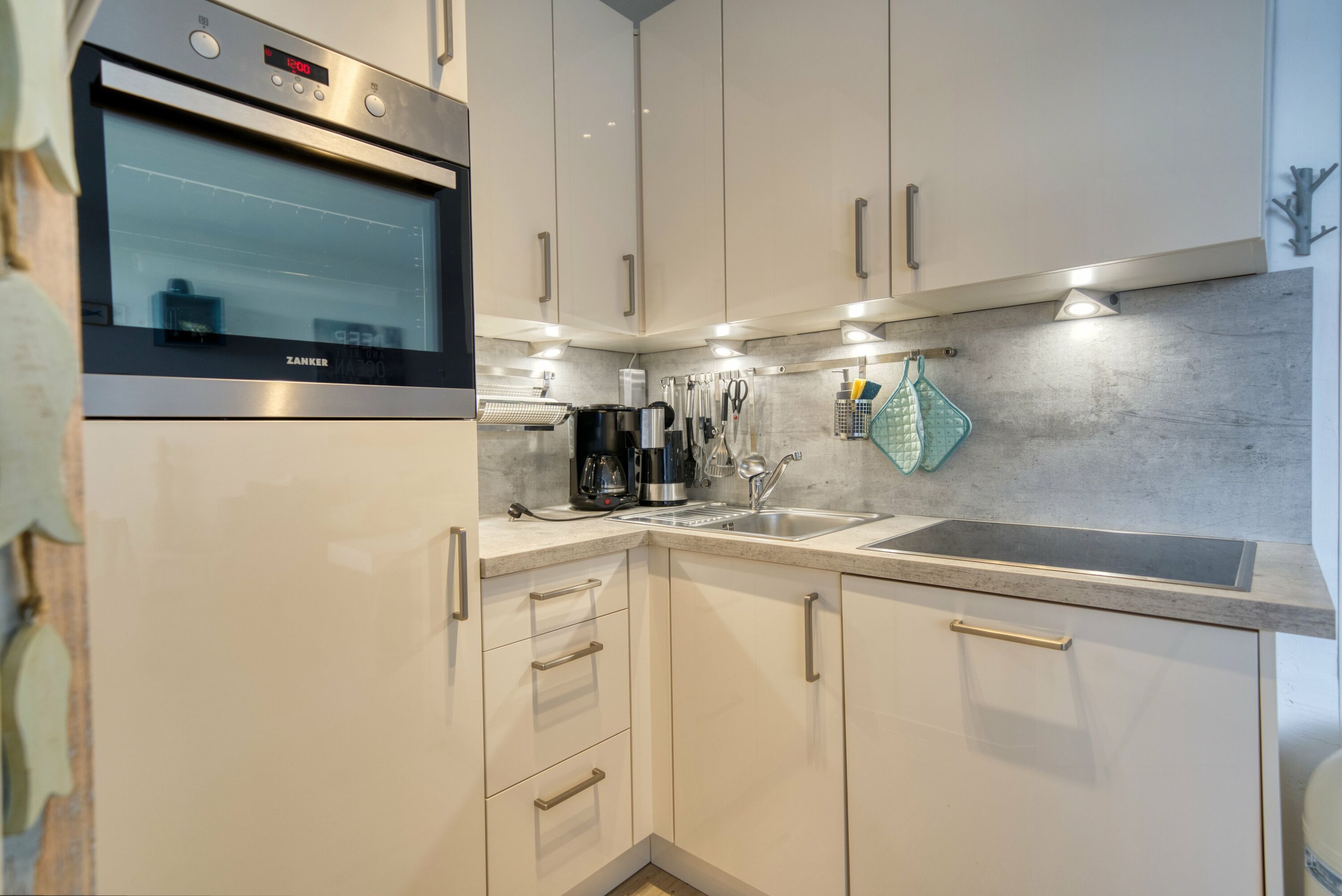 Voll ausgestattete Küche mit Induktionskochfeld