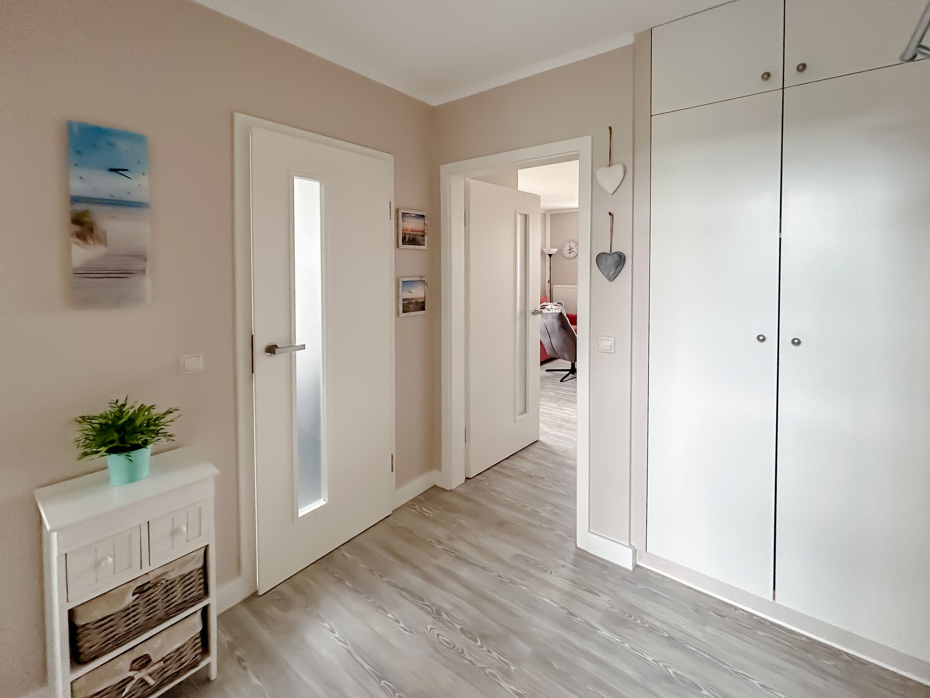 Alle Räume mit Ausnahme des Bades sind mit hochwertigem Vinyl-Boden in heller Holzoptik ausgelegt.