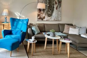 Die komfortable Haushälfte, Haus Lille Hus 1, ist zentral, ruhig und strandnah gelegen und eignet sich für 8 Personen und ein Kleinstkind.