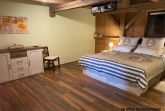 Ein großes Schlafzimmer mit Doppelbett (1,80m. x 2,00m) und TV und ein kleineres Schlafzimmer mit Doppelbett (1,40m x 2,00m) und mit fensterartiger, verschließbarer Öffnung zum Wohnbereich. Auf Grund der Lage der Wohnung in der Scheune gibt es in dem größeren Schlafraum kein Tageslicht, aber in beiden Zimmern Fenster, mit Blick ins Stallgebäude, zum Lüften.