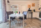 Die Ferienwohnung Seestern empfängt Sie mit einer harmonischen Kombination aus modernem Komfort und gemütlichem Ambiente. Der helle Wohnbereich mit Kamin lädt zu entspannten Abenden ein, während die voll ausgestattete Küche keine Wünsche offenlässt. Genießen Sie Ihre Mahlzeiten auf der eigenen Terrasse oder im Garten. Das Schlafzimmer sorgt für erholsamen Schlaf, und die private Sauna bietet zusätzliche Entspannung nach einem aktiven Tag.