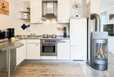 • Küche: Voll ausgestattete Küchenzeile mit Backofen, Kochfeld, Mikrowelle, Kühlschrank, Geschirrspüler, Filterkaffeemaschine, Toaster und Wasserkocher