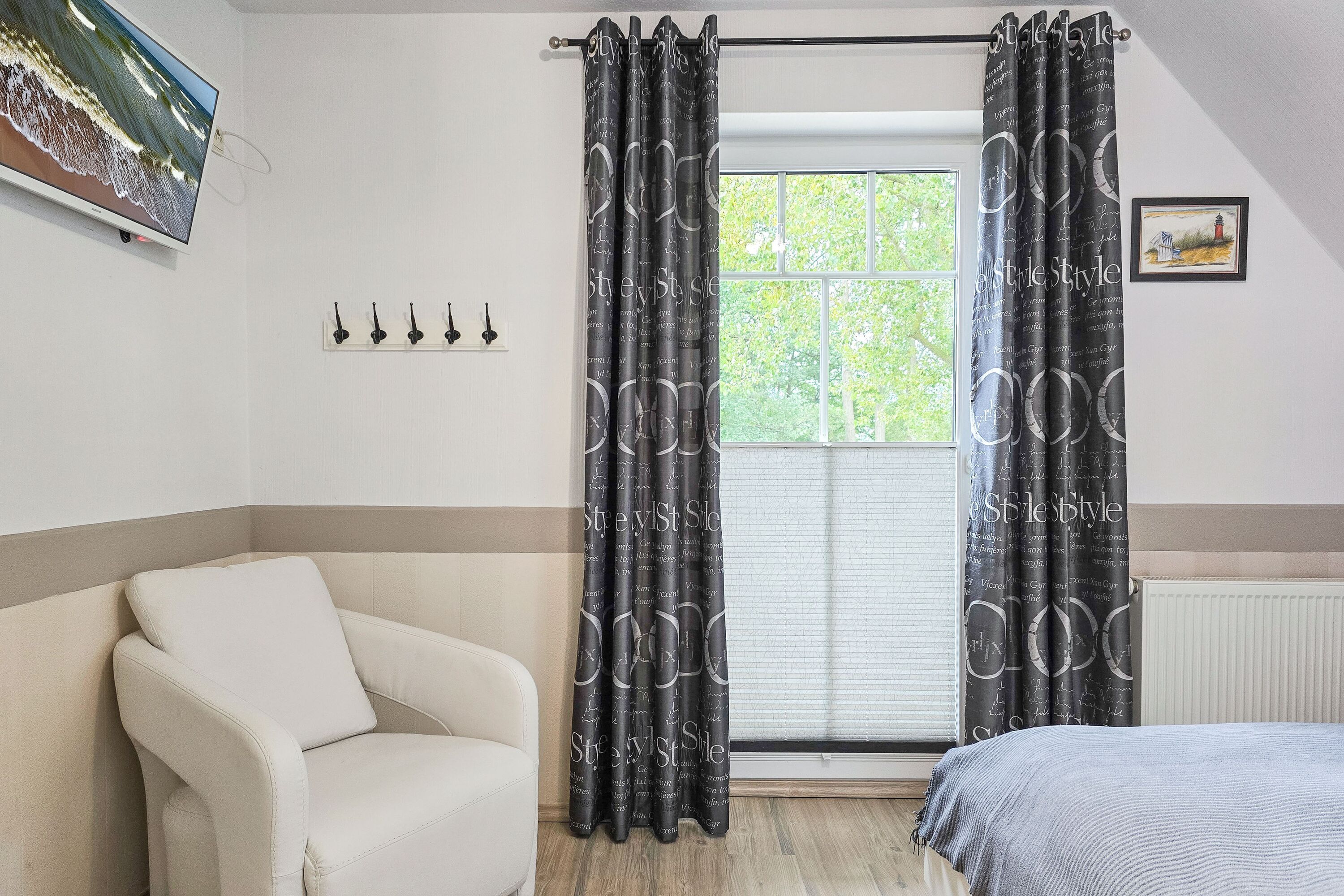Die Ferienwohnung Seeluft empfängt Sie mit einer harmonischen Kombination aus modernem Komfort und gemütlichem Ambiente. Der großzügige Wohnbereich mit Kamin lädt zu entspannten Abenden ein, während die voll ausgestattete Küche keine Wünsche offenlässt. Genießen Sie Ihre Mahlzeiten im Essbereich oder auf dem Balkon mit Gartenblick. Die beiden Schlafzimmer sorgen für erholsamen Schlaf, und die eigene Sauna bietet zusätzliche Entspannung nach einem aktiven Tag.