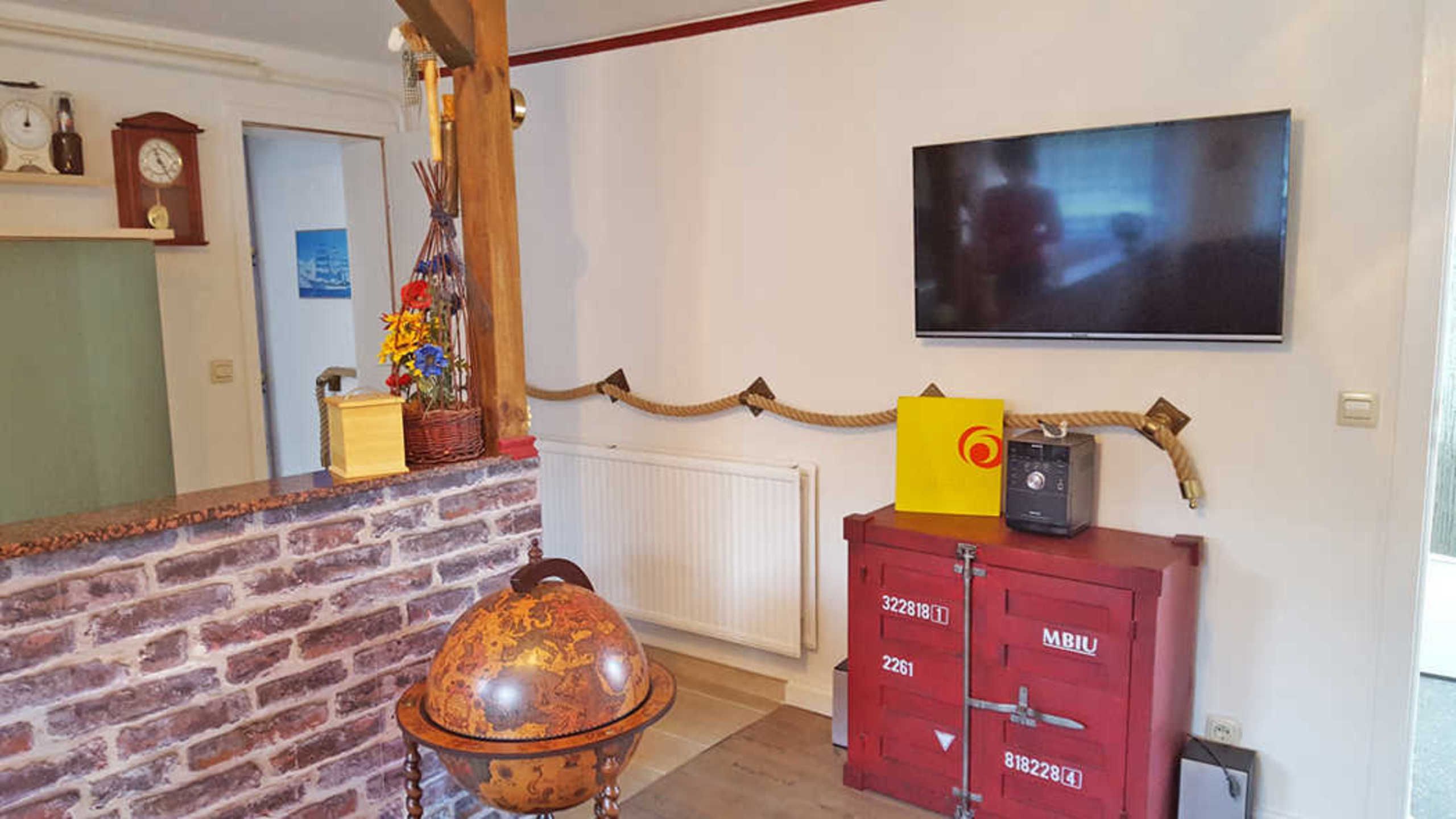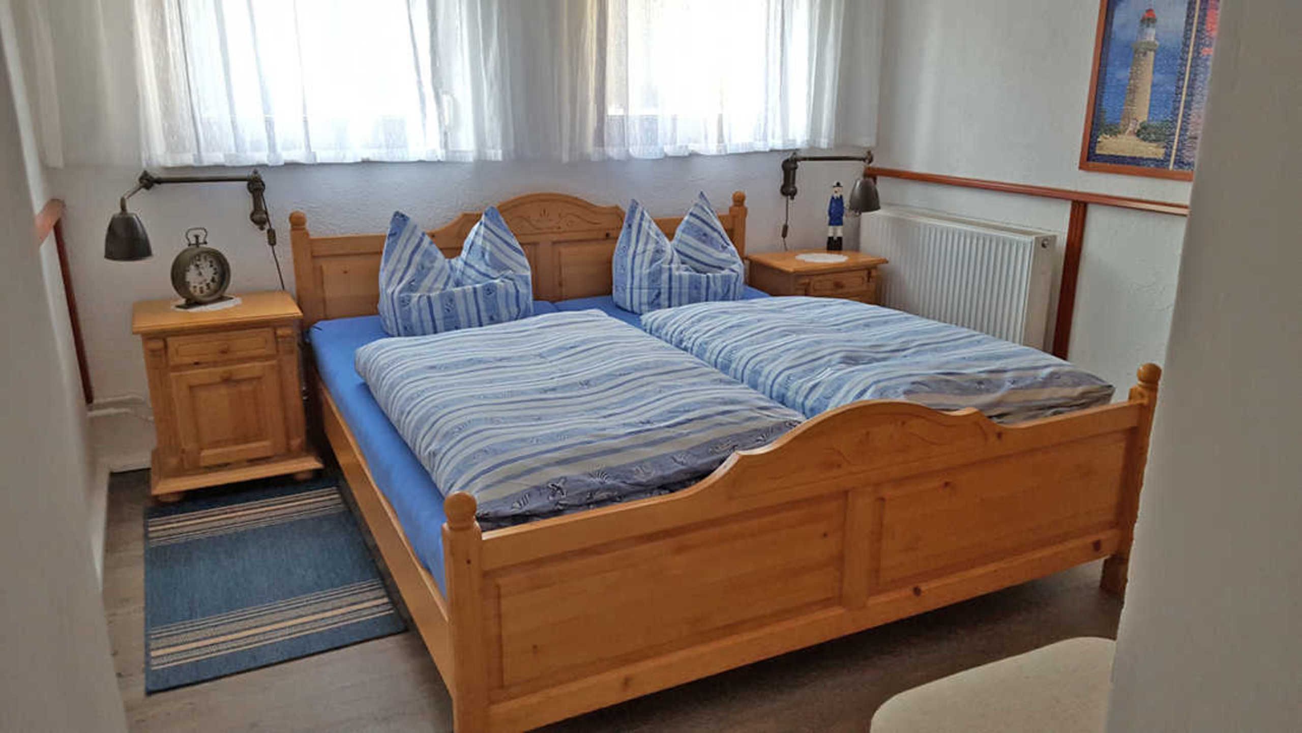 Im gemütlichen Schlafzimmer befinden sich ein Doppelbett und ein großer Kleiderschrank. Im Bad starten Sie unter einer nachempfundenen Schiffsdusche in den Urlaubstag. WC und ein Waschtisch komplettieren das Tageslichtbad. Am Haus können Sie auf einer eigenen Terrasse grillen und relaxen.