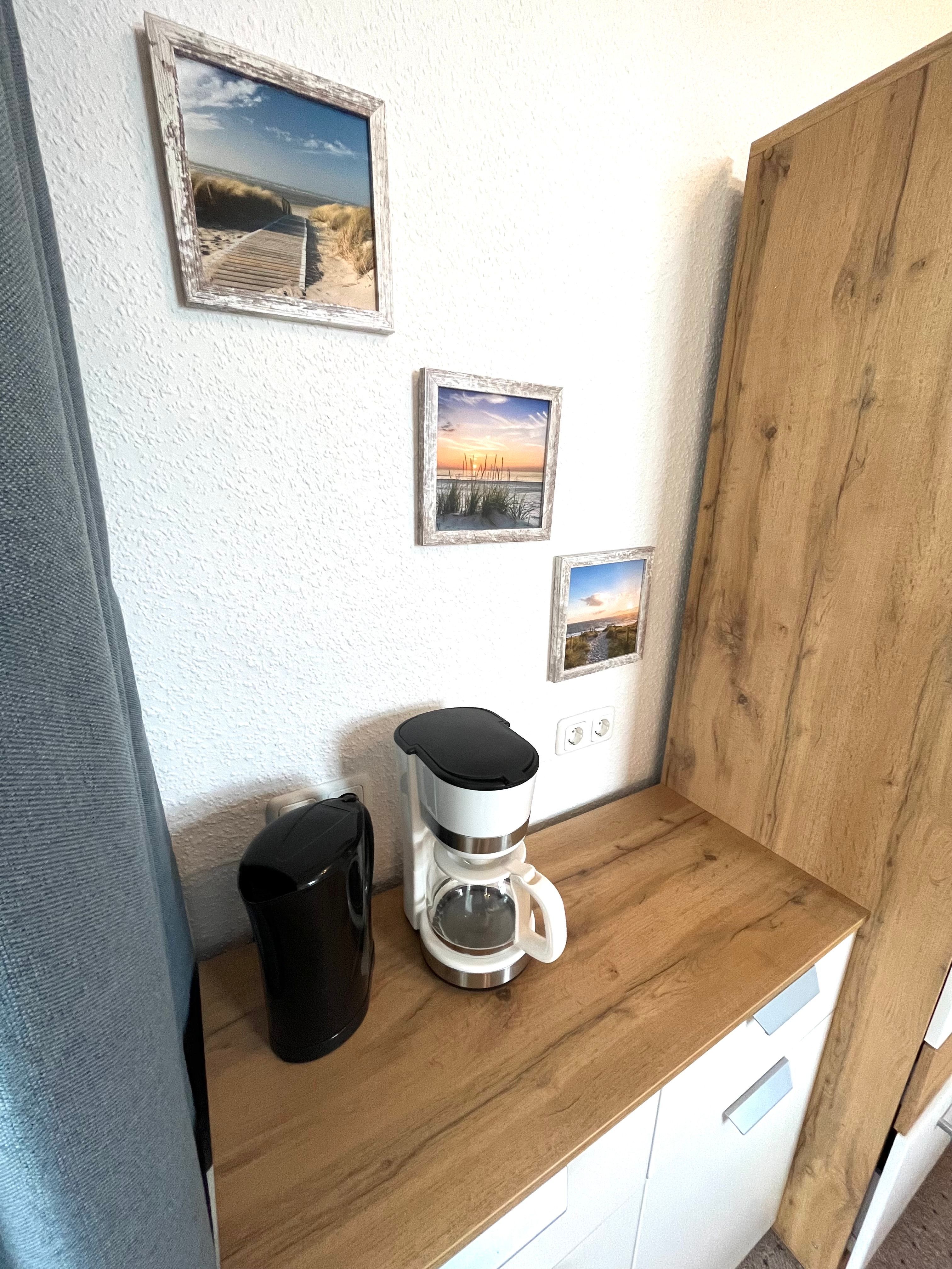 Kaffemaschine und Wasserkocher stehen für Sie im Zimmer bereit.