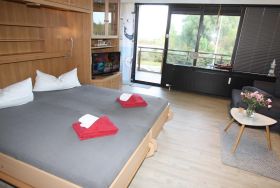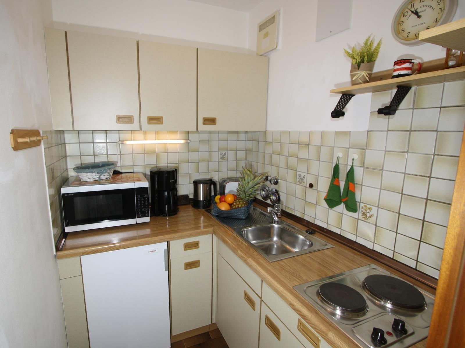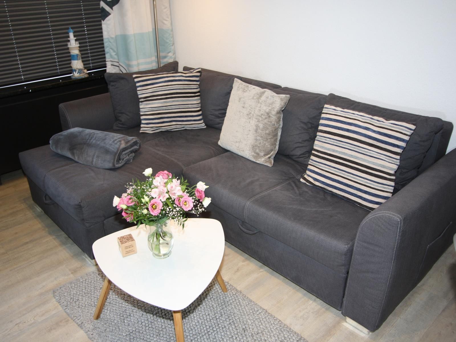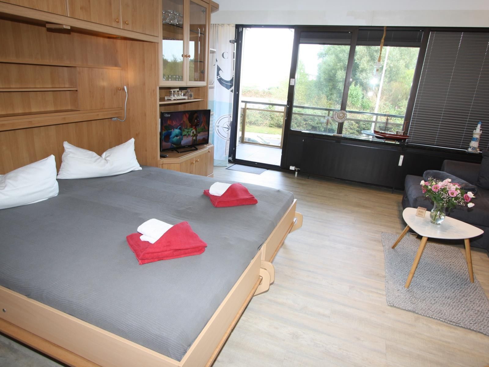 Die 40 m² große Ferienwohnung bietet alles für einen erholsamen Urlaub zu zweit. Das Apartment verfügt über einen Wohn- / Schlafraum, welcher mit einer gemütlichen ausziehbaren Couch, einem Essplatz sowie einem Schrank-Doppelklappbett ausgestattet ist. Die kleine separate Küche ist mit allen gängigen Küchenutensilien ausgestattet und bietet somit die Möglichkeit, ein schönes Frühstück oder ein gemütliches Abendessen, welches dann auf dem Balkon mit Blick zum Deich genossen werden kann, zuzubereiten.