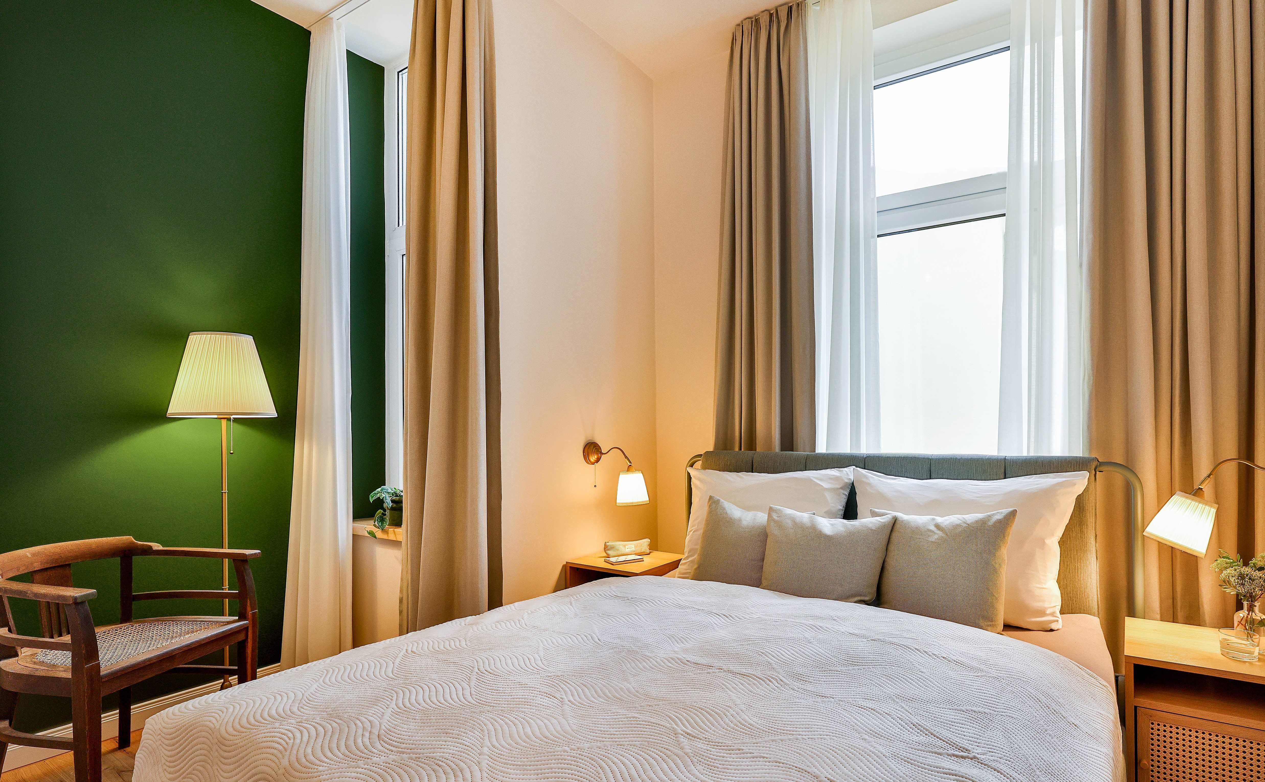 Schlafzimmer: Die Wohnung verfügt über 2 großzügige Schlafzimmer mit hochwertigen Betten, Bettwäsche und ausreichend Stauraum.