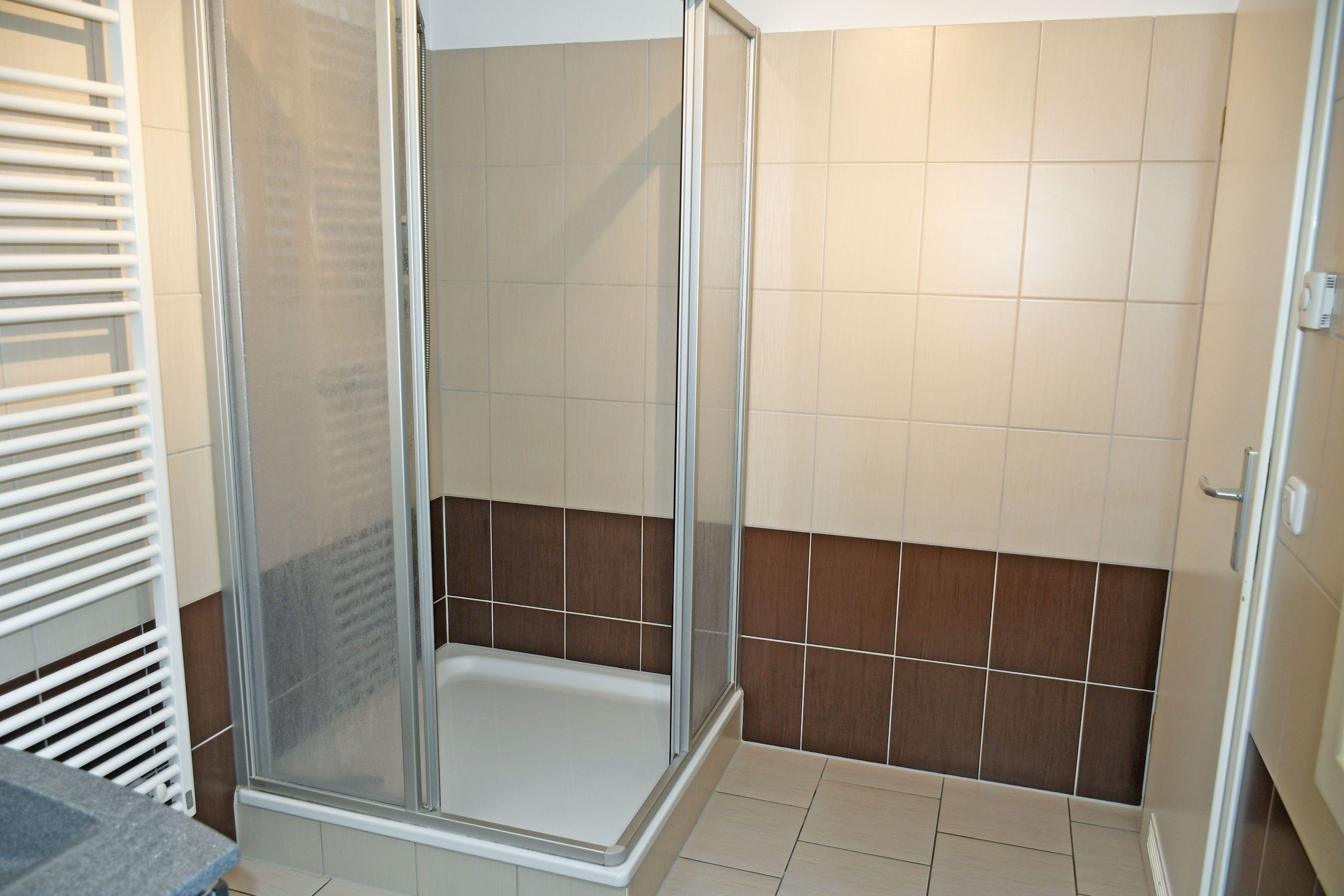 2 moderne Bäder sind mit Dusche, WC, Handtuchtrockner und Waschtisch ausgestattet. Es gibt zusätzlich ein Gäste-WC mit Waschbecken.