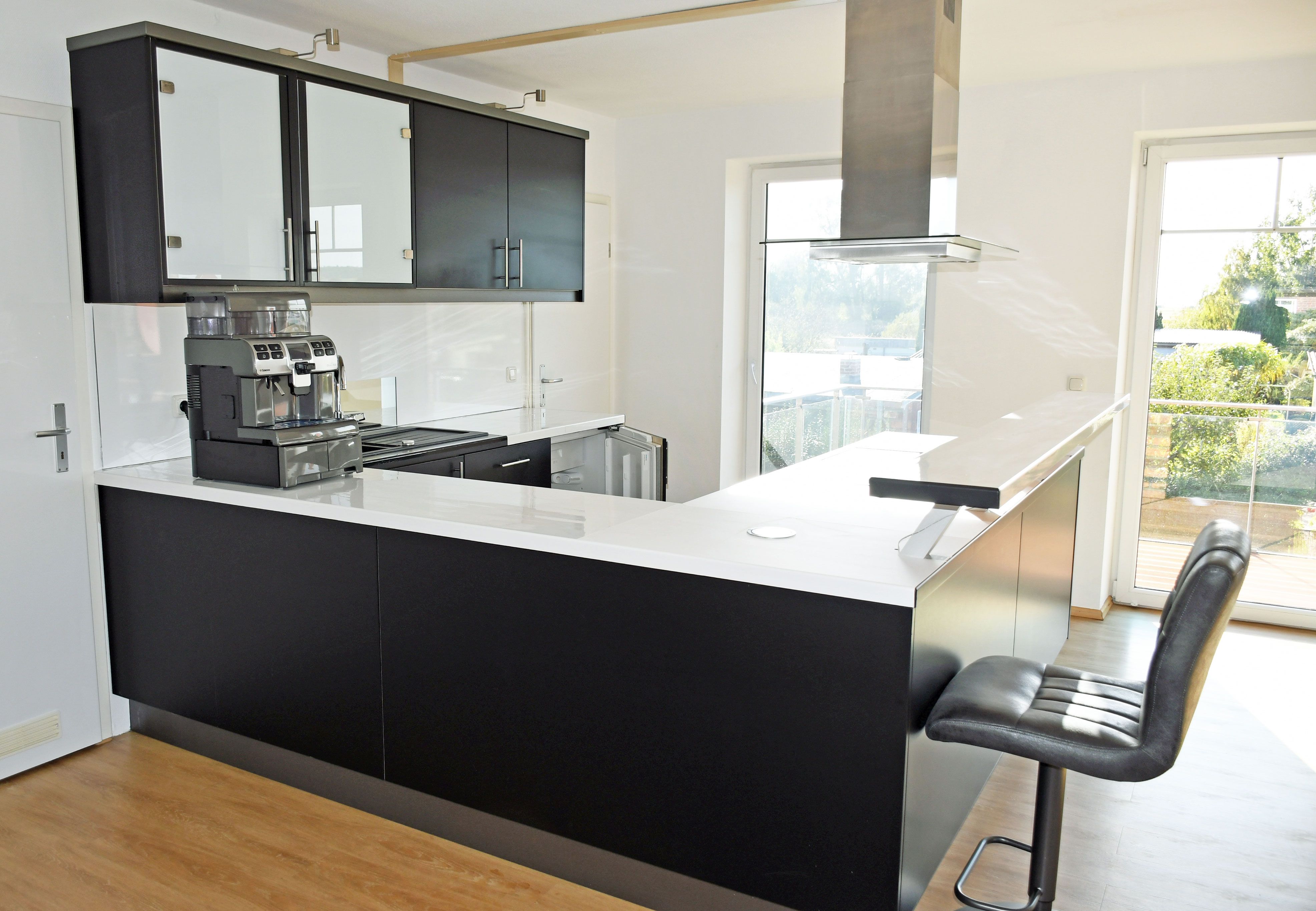 Die moderne Küchenzeile ist komplett ausgestattet mit Cerankochfeld, Abzugshaube, Geschirrspülmaschine, Wasserkocher, Kaffeemaschine, Toaster und umfangreichen weiteren Küchenutensilien.