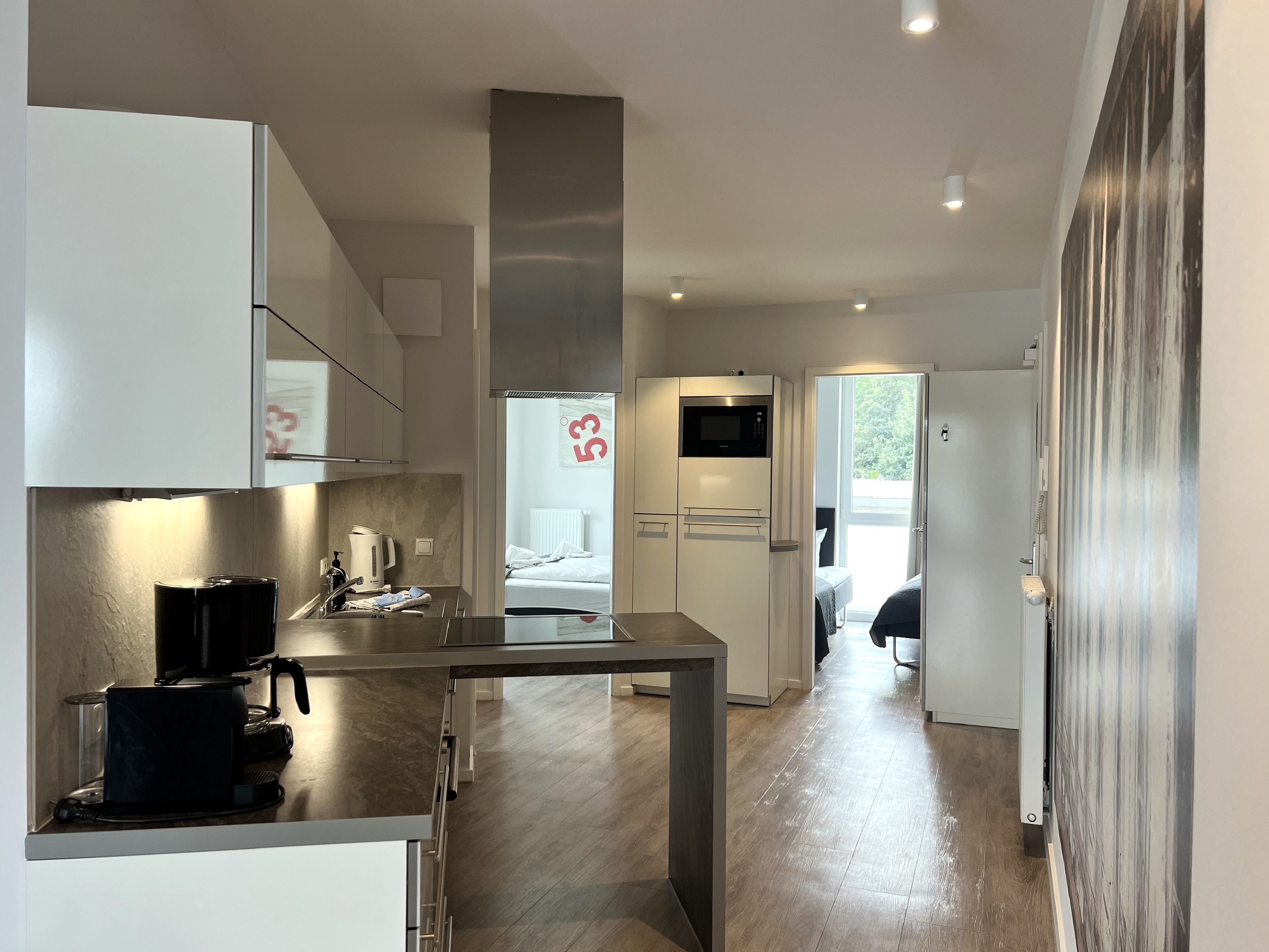 Die Wohnung ist stilvoll, hochwertig und modern eingerichtet. Ein besonderes Highlight ist ihr persönlicher Wellnessbereich mit Sauna, Whirlpool und Dampfbad mit integrierter Doppel-